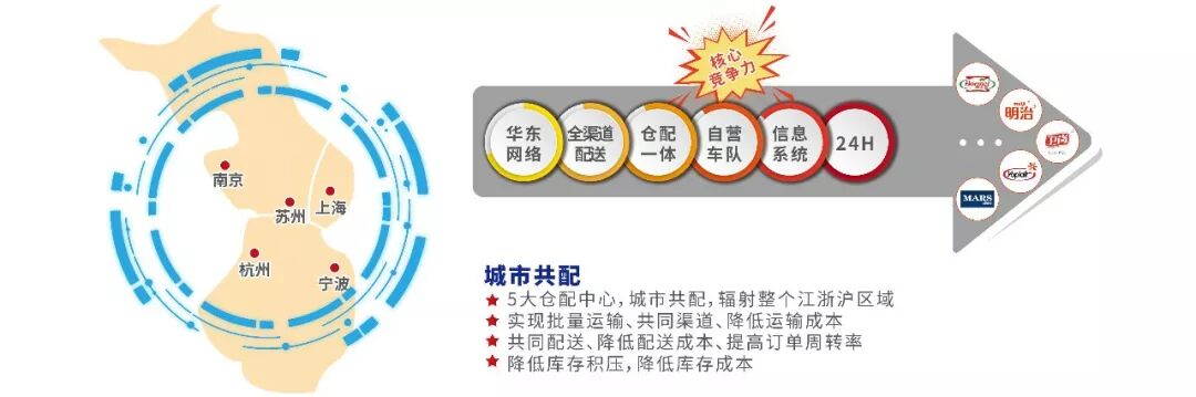 全天460余辆城市配送车辆,配送网络涵盖餐饮、便利店、商超卖场等所有终端渠道。