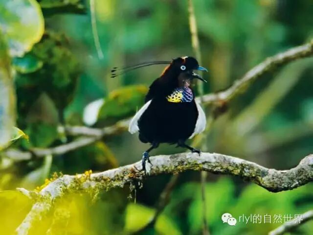 六线风鸟(六线极乐鸟)是雀形目风鸟科六线风鸟属4种奇特鸟儿的统称,该属秉承了风鸟科夸张多变的特点,将头顶的冠羽和胸饰发展成一道奇特风景。六线风鸟属 分布于新几内亚、印尼,包括西六线风鸟(阿尔法六线风鸟)、白肋六线风鸟、博氏六线风鸟、瓦氏六羽风鸟4种,外形均相似,体羽基本上黑色,胸前有靓丽的胸 盾,头部向后伸出6根像金属丝的羽毛,末端呈旗状,生有胁羽。