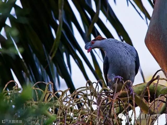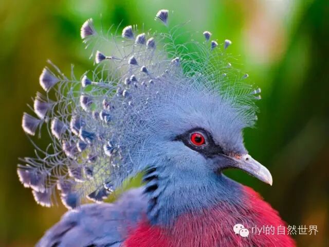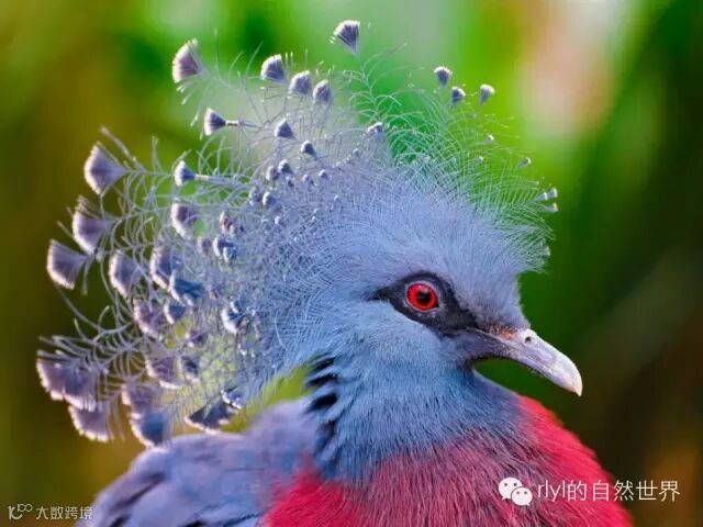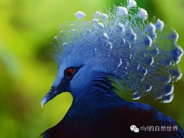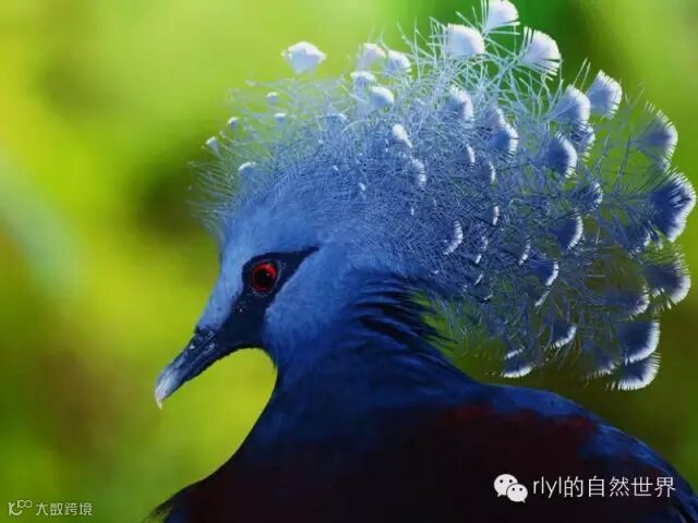 维多利亚凤冠鸠,鸠鸽目鸠鸽科凤冠鸠属最著名的鸟类。凤冠鸠属共3种,南凤冠鸠和紫胸凤冠鸠与维多利亚凤冠鸠长相相似,羽冠相似,但维多利亚凤冠鸠羽冠似乎是上帝的宠儿,珊瑚状的羽冠点缀着孔雀翎似的亮片,可以说是鸟类羽冠的经典之作。