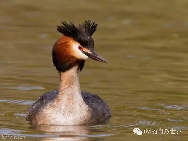 凤头䴙䴘最显眼的是其夏天具有发达的冠羽,枕部两侧的羽毛往后延伸,形成两束黑色长形冠羽,黑色冠羽两侧经耳区到喉部有由长形饰羽形成的环状皱领,其基部棕栗色,端部黑色,色彩对比强烈。冬羽和夏羽基本相似,但上体羽色较暗,头顶冠羽短而不明显,皱领消失。凤头䴙䴘广泛分布于欧洲、亚洲、非洲、大洋洲,亚种3个,主要栖息于湖泊、江河、水塘、水库和沼泽等地带,极善水性,繁殖求偶时表演非常精彩的䴙䴘求偶舞蹈,也是比较常见、非常著名的一种游禽。