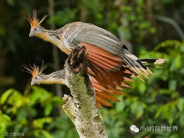 麝雉,是世界上最奇特的鸟类之一,体长61厘米,体重仅810克,头特小,颈细长,正面看外形似雉类的孔雀,嘴短而曲;两翅较大,但飞行无力,尾羽长而宽, 具有一簇长直如鬃毛的羽冠。