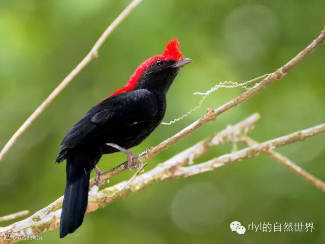 盔娇鹟,为雀形目娇鹟科(旧称侏儒鸟科)盔娇鹟属单一鸟种。娇鹟科为小型森林鸟,喙短而宽,翅短圆,腿短,趾基局部连并,羽色鲜明。盔娇鹟雌雄异形,尾部均较长,雄性身体黑色,头部红色,头部红色一直延伸到背部,而雌性一身绿色,具有浅显的浅棕色羽冠。