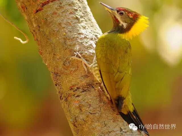 鹃形目啄木鸟科绿啄木鸟属的黄冠啄木鸟