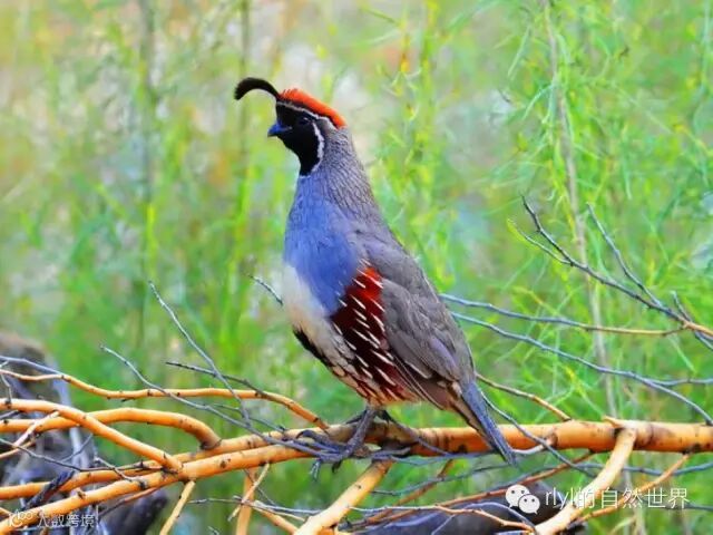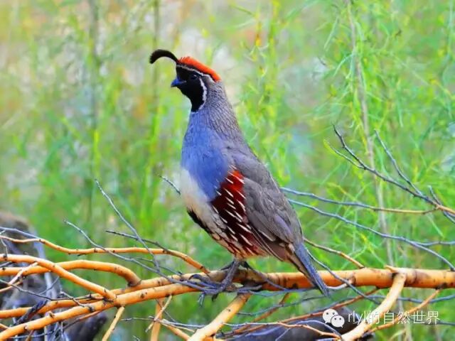 同属的黑腹翎鹑长相和冠羽均相似,这种冠羽看似非常简单,也似夸张倒过来的黑色逗号,十分简洁而醒目。黑腹翎鹑分布广泛,生存能力强,几乎可以在任何环境下生存,可以进行人工养殖,是美国加利福尼亚州州鸟。