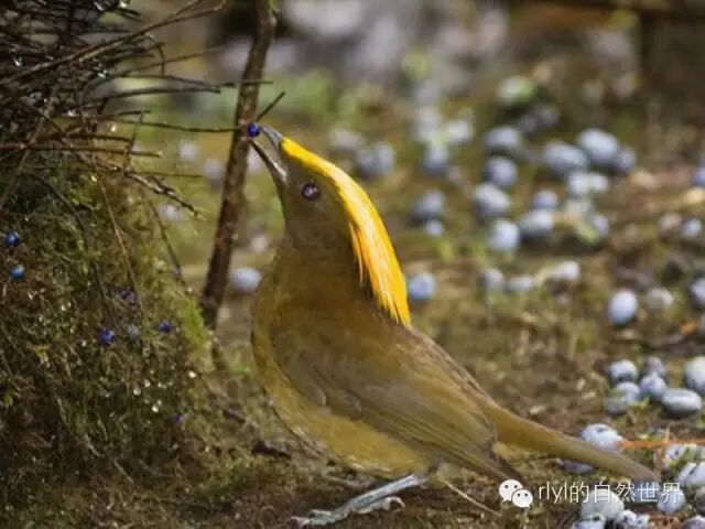 黄额园丁鸟,雀形目园丁鸟科Amblyornis属的珍奇鸟类,该鸟种1981年首次发现于福贾山,之后一直存谜,2005年12月,由布鲁斯·比勒带领十 一名科学家组成的国际研究小组前往福贾山山脉的未开发区域,拍摄到该鸟的第一张照片,但是这种鸟类的住所至今为止都十分神秘。