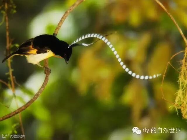 萨克森极乐鸟(萨克森风鸟),雀形目风鸟科萨克森风鸟属的单一物种,也是世界羽冠最奇特鸟类之一。萨克斯极乐鸟体长22厘米,雌雄异形,雄鸟头和背部大体上 褐色,腹部黄色,腿棕灰色,眼两侧后端各长一根长达50厘米的头带,头带上约有40片似珐琅质的方形裂片,可谓是鸟类一大奇观。