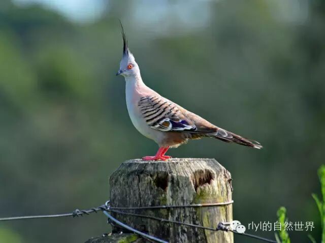 冠鸠,别名凤头鸠。现分布于除澳大 利亚北部靠赤道地区外的澳洲大陆,栖息于草地、灌木丛和林地,也出现于河边、园子、牧场、运动场和高尔夫球场上。