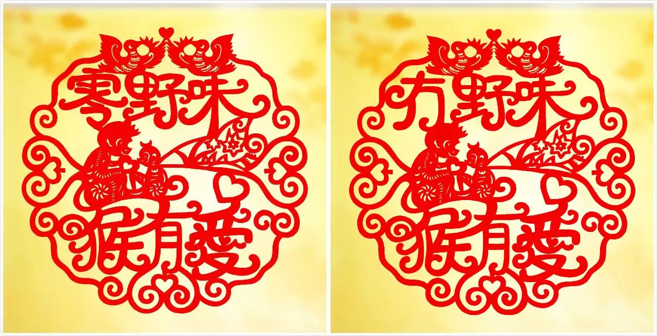 此外,我们还特别设计了方言版窗花“冇野味,猴有爱”。“猴”字,通粤语中的“好”字读音,而“冇”字,音mao第三声,在福建、广东、广西等多个南方省份方言中,意为“没有”。合在一起,正是“没有野味好有爱”的意思。有需要的亲们,请注明就可以啦~O(∩_∩)O