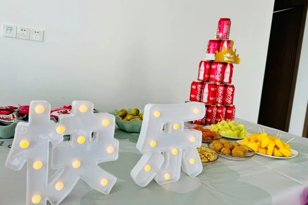 精心布置的场地,用心准备的礼物,琳琅满目的蛋糕、水果,洋溢着浓厚的生日氛围,都在等待着寿星们的到来。