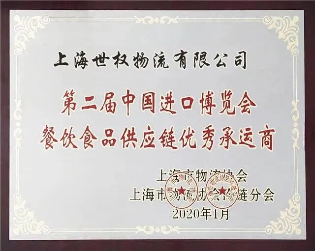 世权物流荣列第三届进博会餐饮保障物流企业