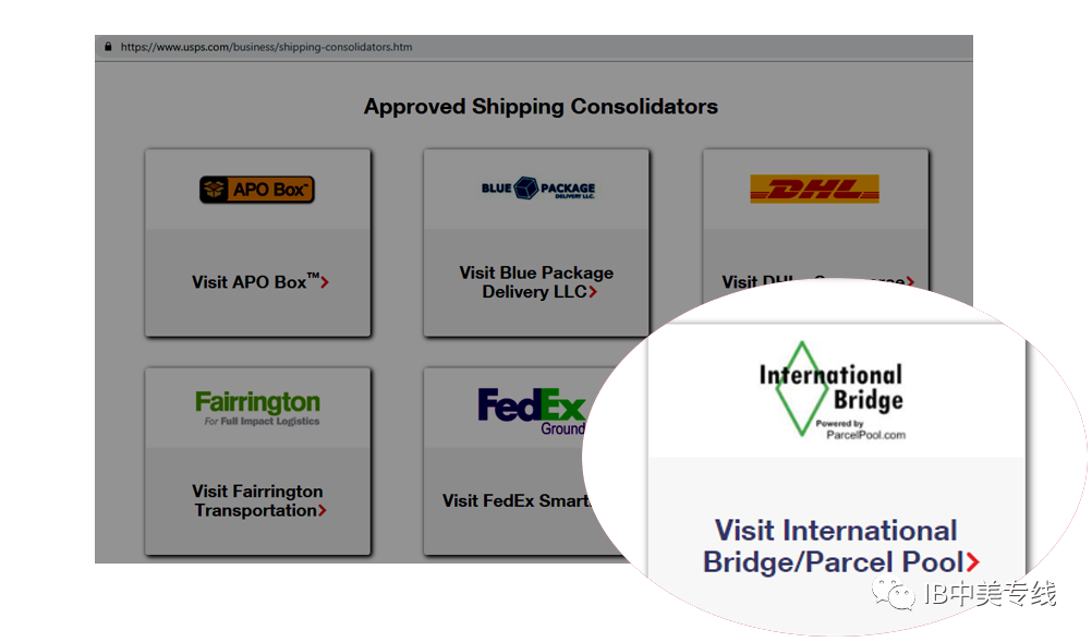 International Bridge(IB)自1999年美国成立,是美国邮政官方指定运输合作伙伴之一,18年来一直专注于为世界各大跨境电商服务平台卖家提供快速、低成本或无成本的优质小包裹运输解决方案。