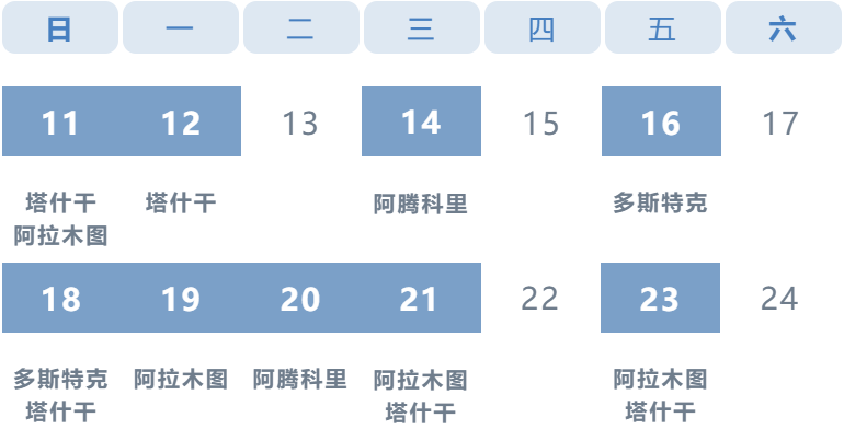 中亚线路每日开行2-4班,平均运输时效8-10天,线路全面覆盖中亚各国。