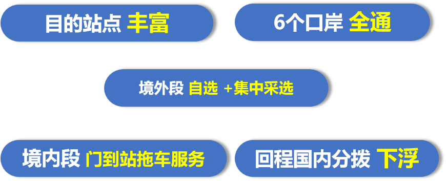 班列可直达哈萨克斯坦、乌兹别克斯坦、塔吉克斯坦、吉尔吉斯斯坦、土库曼斯坦、阿塞拜疆、阿富汗全境,平均时效3-8天。