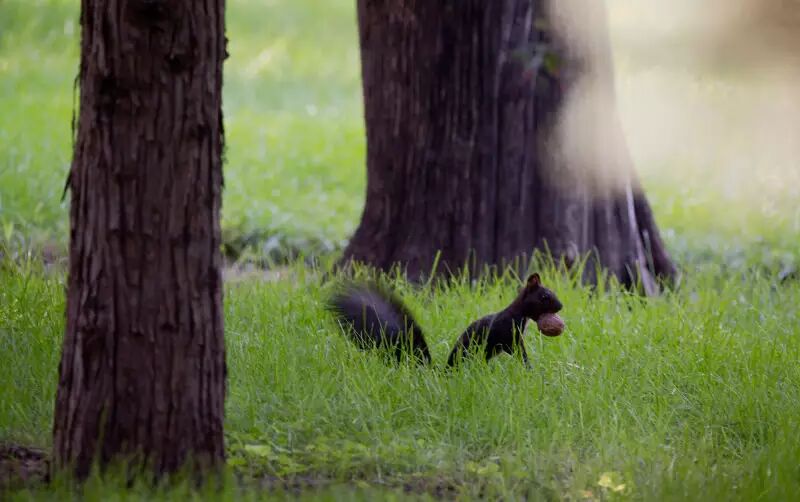 下图是在上周六10月3日的活动中,摄影师杨佳老师拍到的小松鼠。它在草丛中找到一枚坚果,叼着坚果蹦蹦跳跳着跑远了。是不是非常可爱呢?