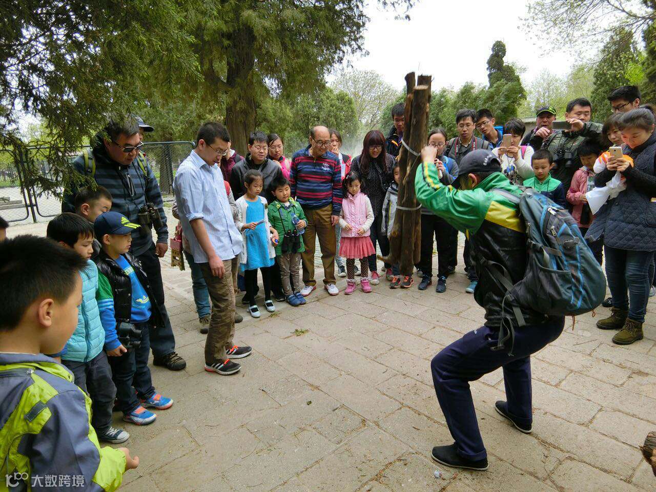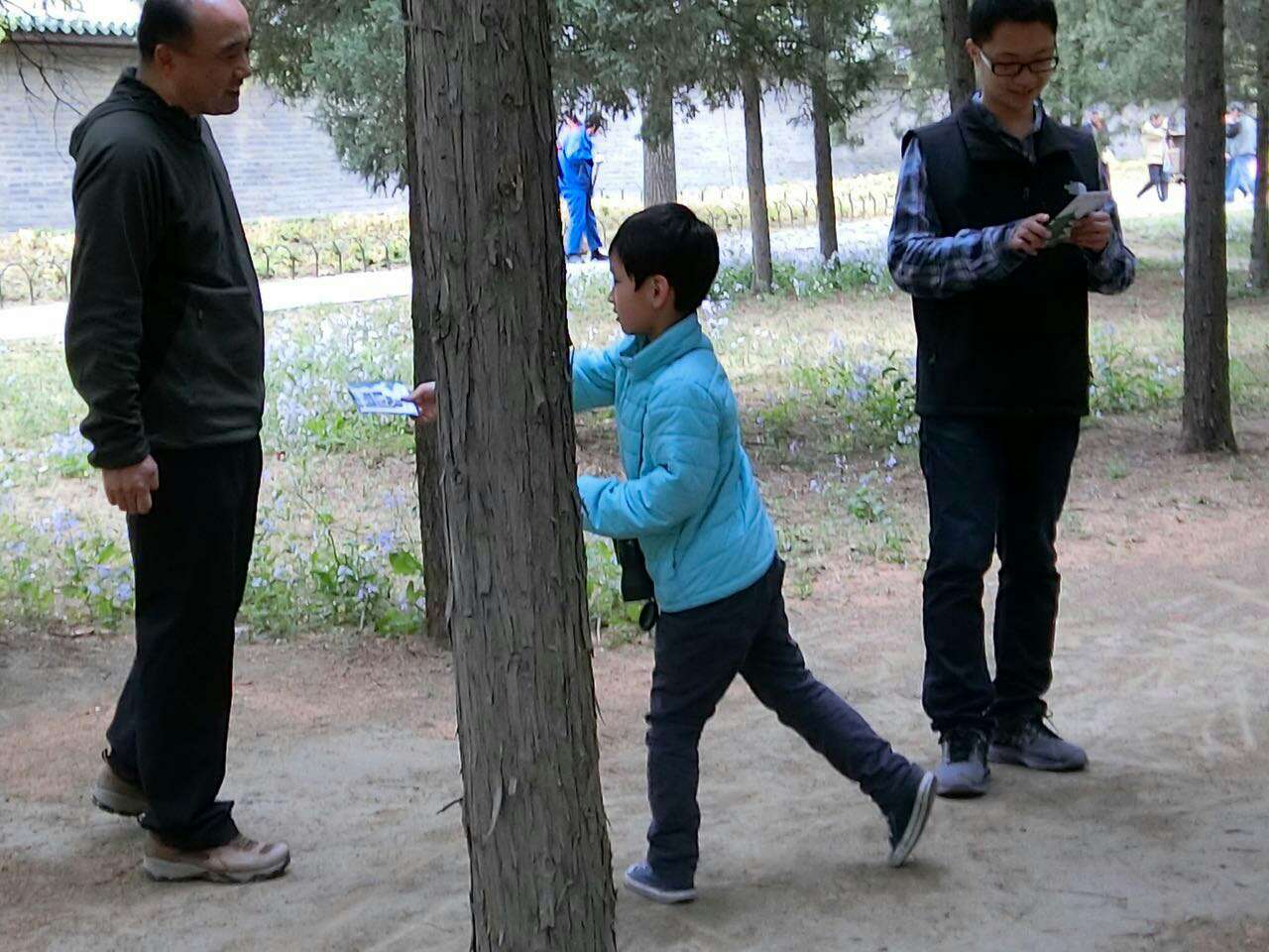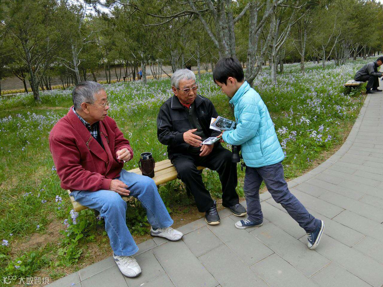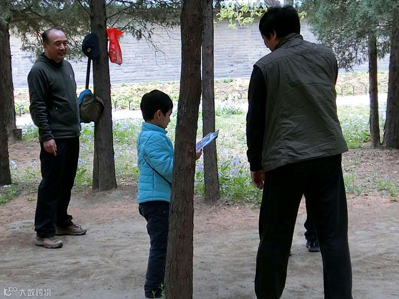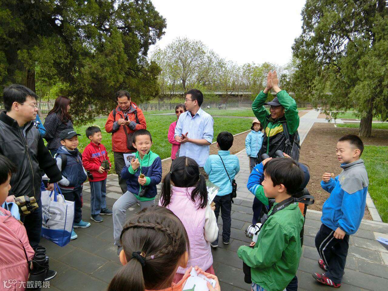 孩子们全部动员起来,在苗圃周边给锻炼的叔叔阿姨爷爷奶奶们发护鸟折页。