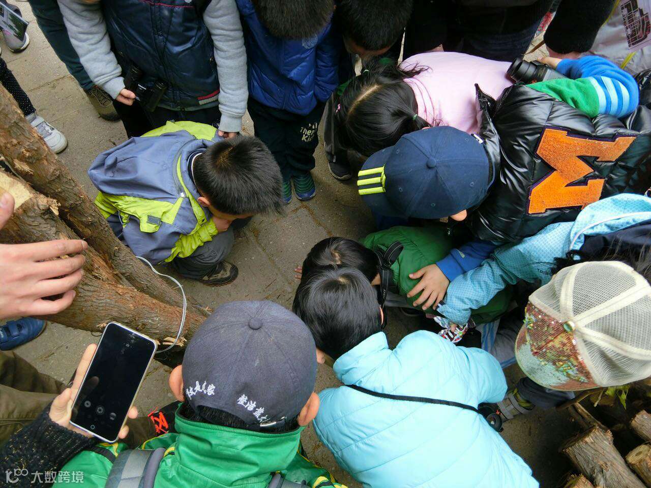 ▲大家兴高采烈的欢迎负责苗圃管理的金老师来为大家介绍苗圃。