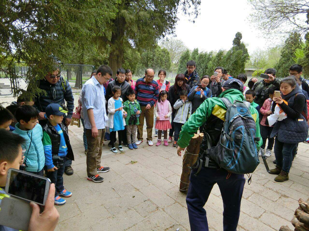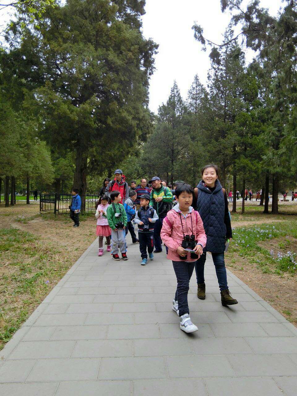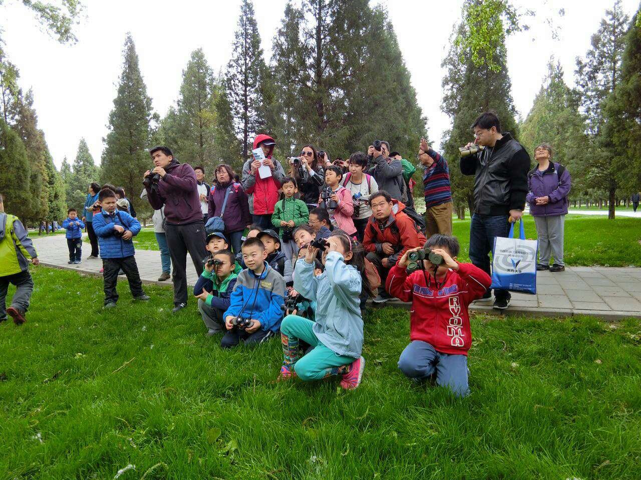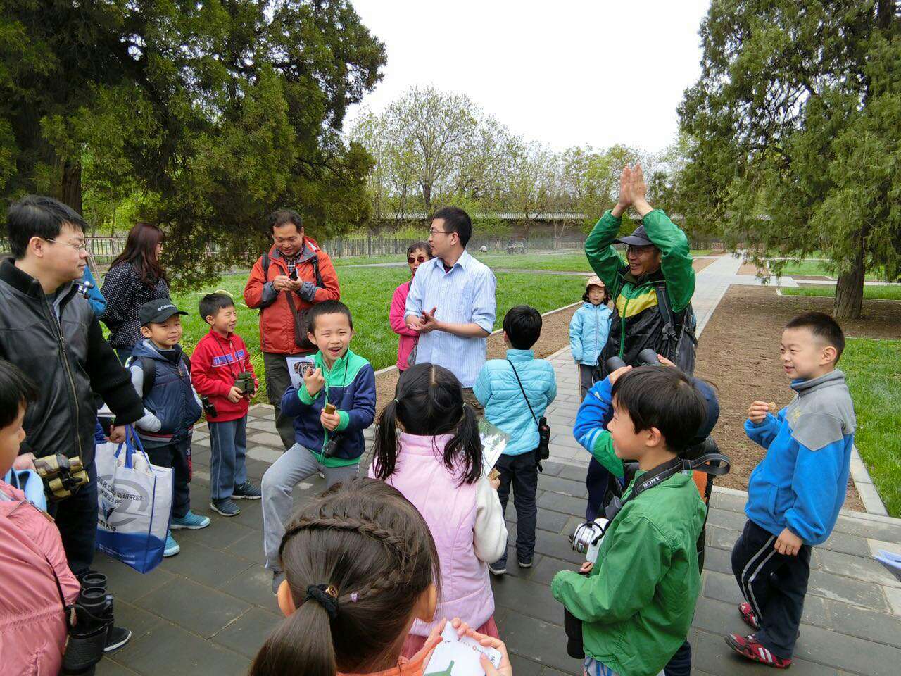 天坛公园,我们一行45人在指导老师老董行和让候鸟飞公益基金王迪的带领下开始了观鸟护鸟活动。
