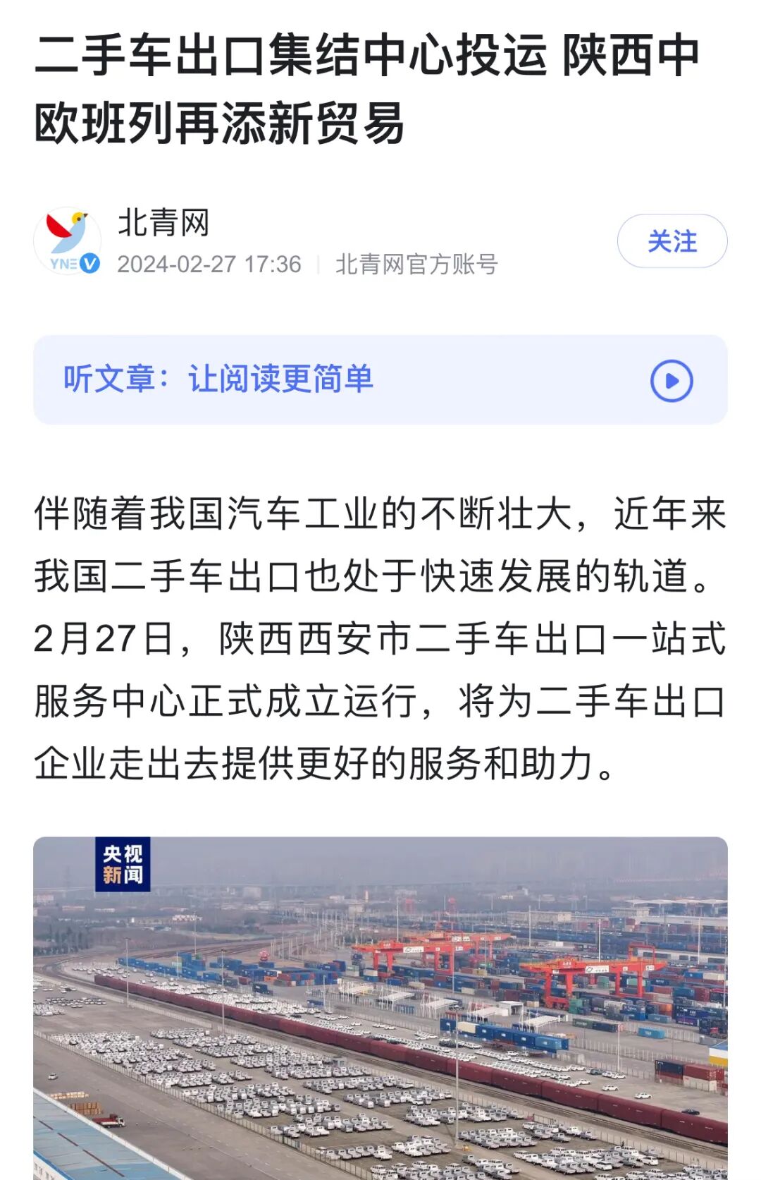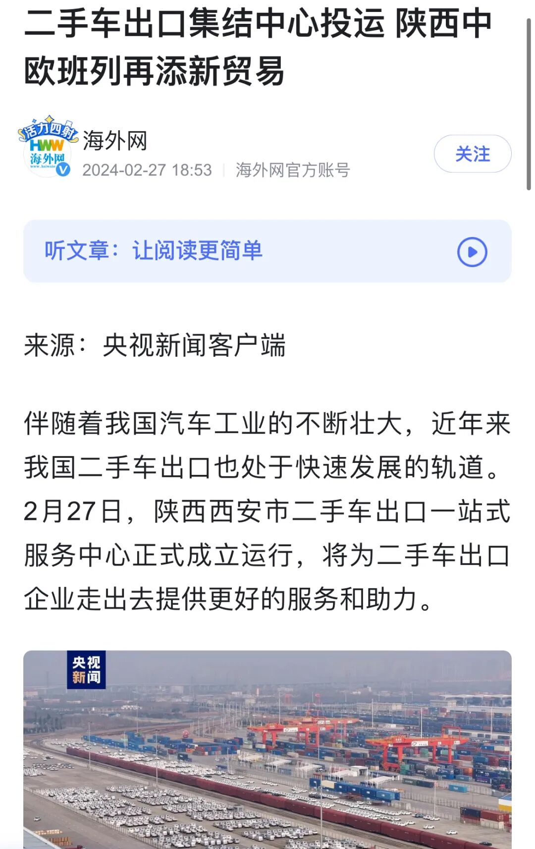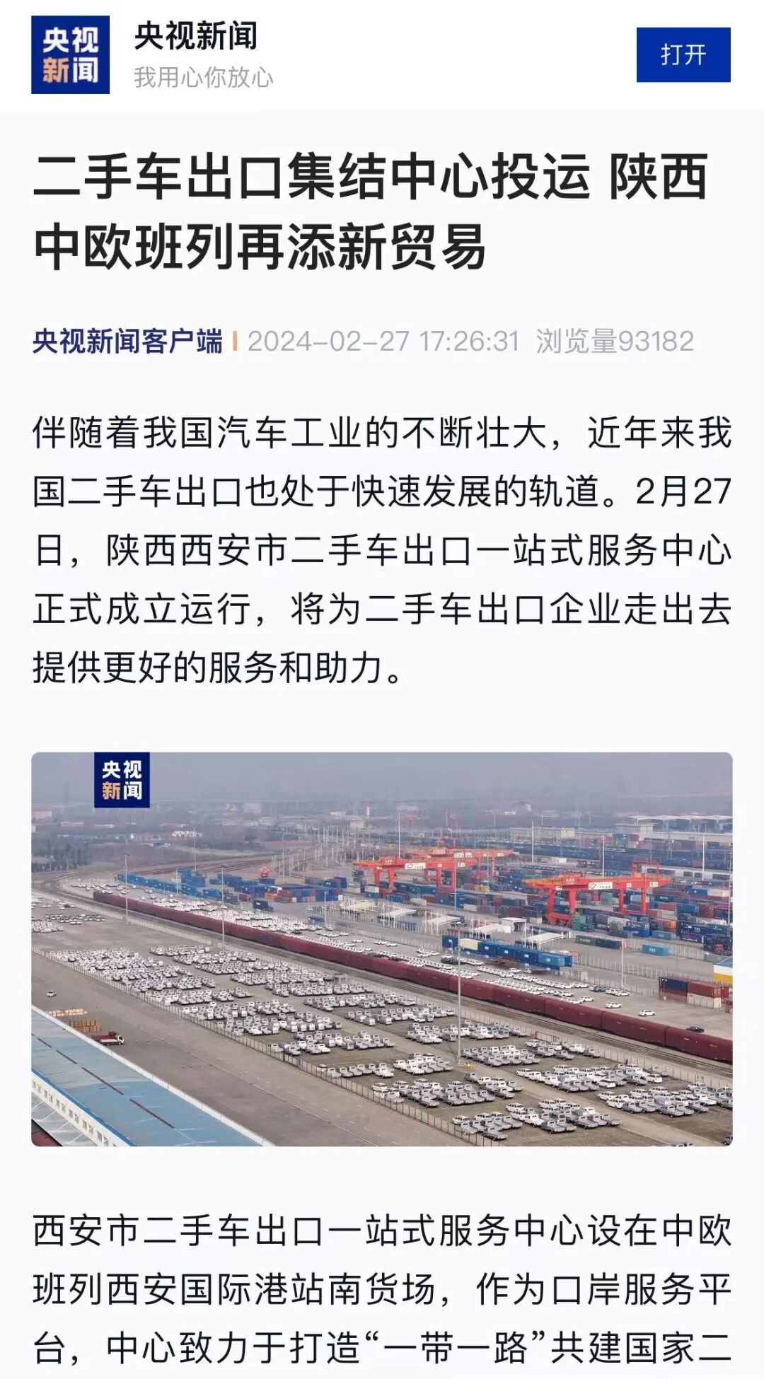 “西安市二手车出口一站式服务中心的设立是我们积极落实中国—中亚峰会成果的重要举措,二手车出口业务已成为全市开放型经济发展的新亮点。服务中心系统集成了中欧班列长安号的通道优势,综合保税区的平台优势和启运港退税的政策优势,在全省首创‘二手车出口+中欧班列+综保区集结+启运港退税’的业务模式,可为国内二手车出口企业提供全流程‘一站式’服务,将助力西安港打造面向‘一带一路’沿线国家地区的二手车出口的集结中心。