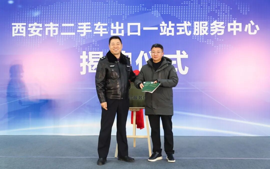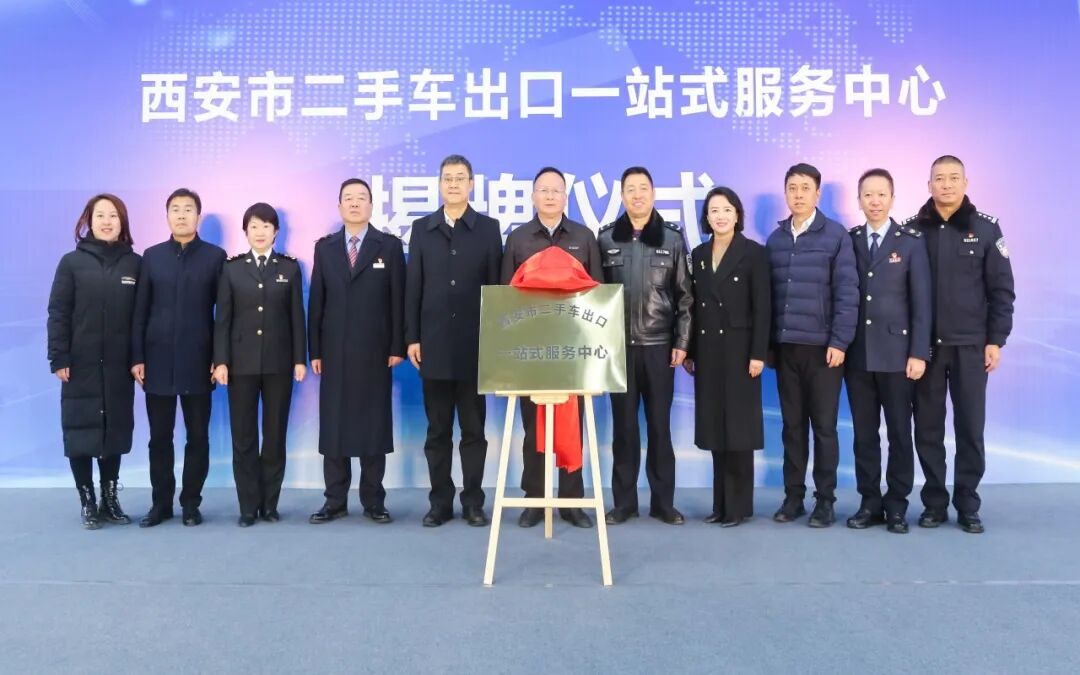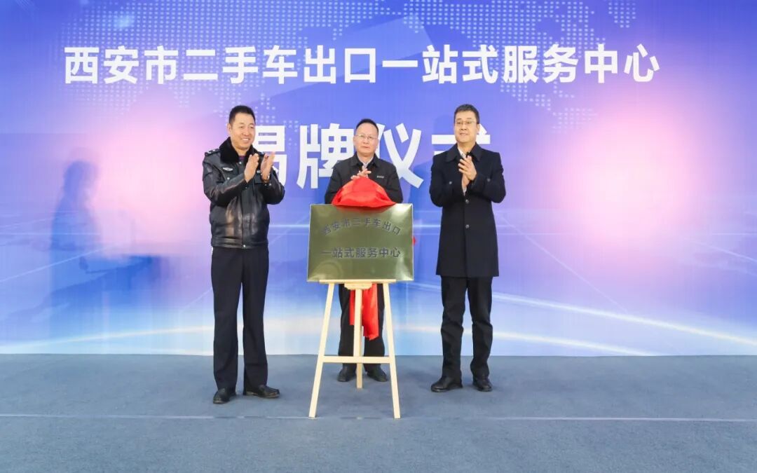 活动现场,西安市商务局副局长、中国(陕西)自由贸易试验区西安管理委员会副主任李群刚,西安市公安局交警支队副支队长胡伟涛,国家税务总局西安市税务局党委委员、总经济师王青山共同为“西安市二手车出口一站式服务中心”揭牌。