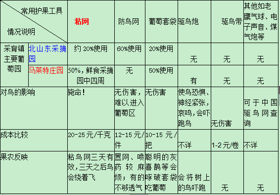 以上照片就是采育镇果农主要的3种护果方式。下表将对这些常用的护果工具进行简单比较。更加详细的会在后期回访后完善。