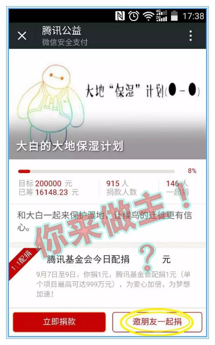由腾讯公益发起的1:1配捐筹款