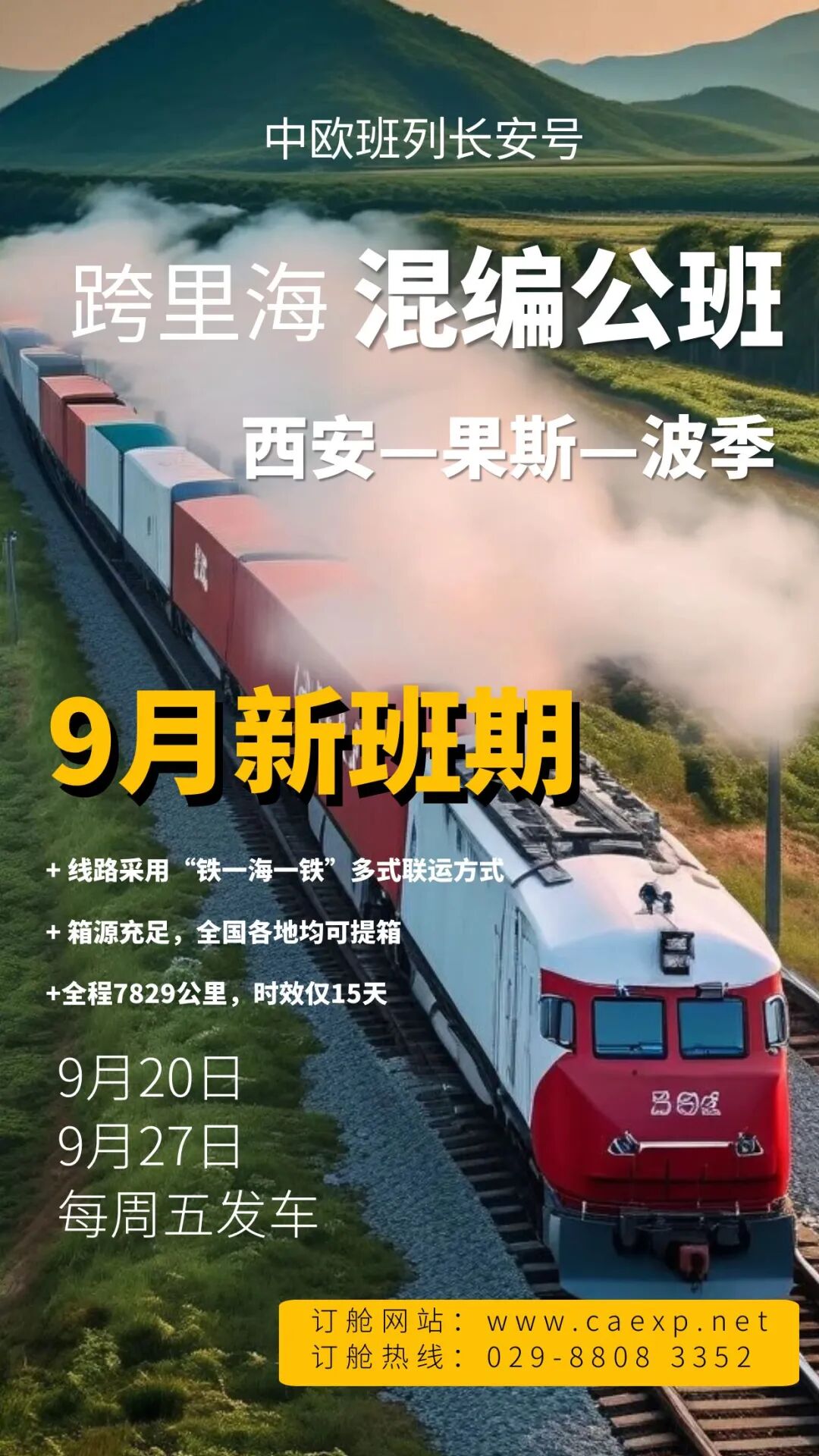 中欧班列长安号格鲁吉亚、土耳其混编公班每周一班稳定开行,9月班期为:9月20日(周五)、9月27日(周五)。发车时效和运输时效双重保证,全国各地均可提箱,箱源充足,预定从速,详情可咨询公班客户经理。