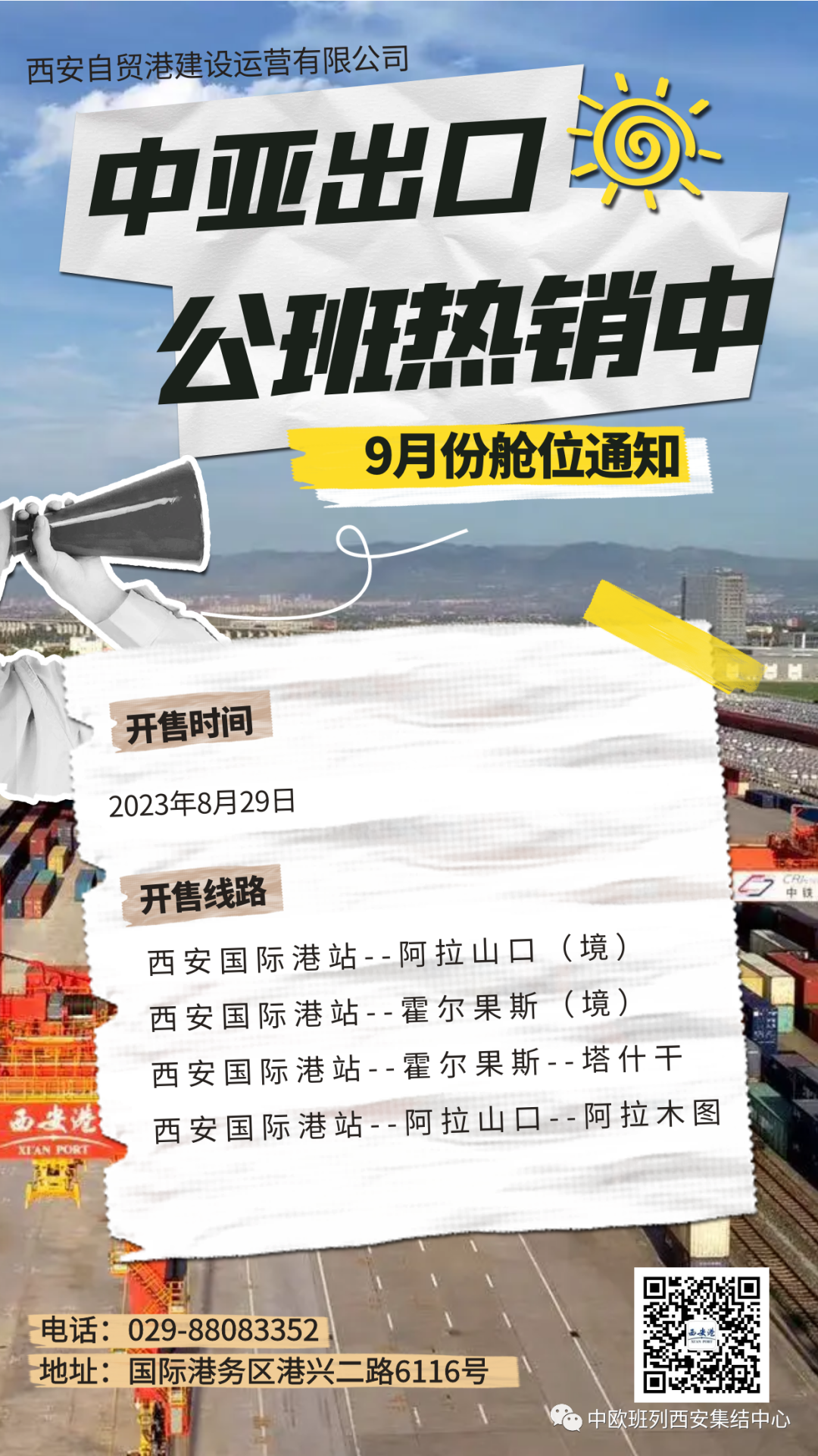 中欧班列长安号中亚线路9月公共班列火热销售中,现将信息提示如下: