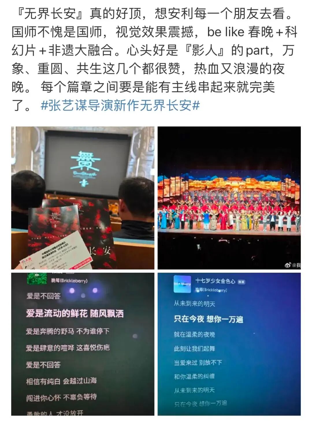由总导演张艺谋与总制作人沙晓岚“巅峰组合”的中国首部大型驻场观念演出《无界·长安》在11月9日正式公开亮相,并在首演中大获成功!现场座无虚席的盛况,和演出过程中贯穿始终的掌声,让每一位观众都发自内心获得了一份认同感——“中国的西安,世界的长安”!