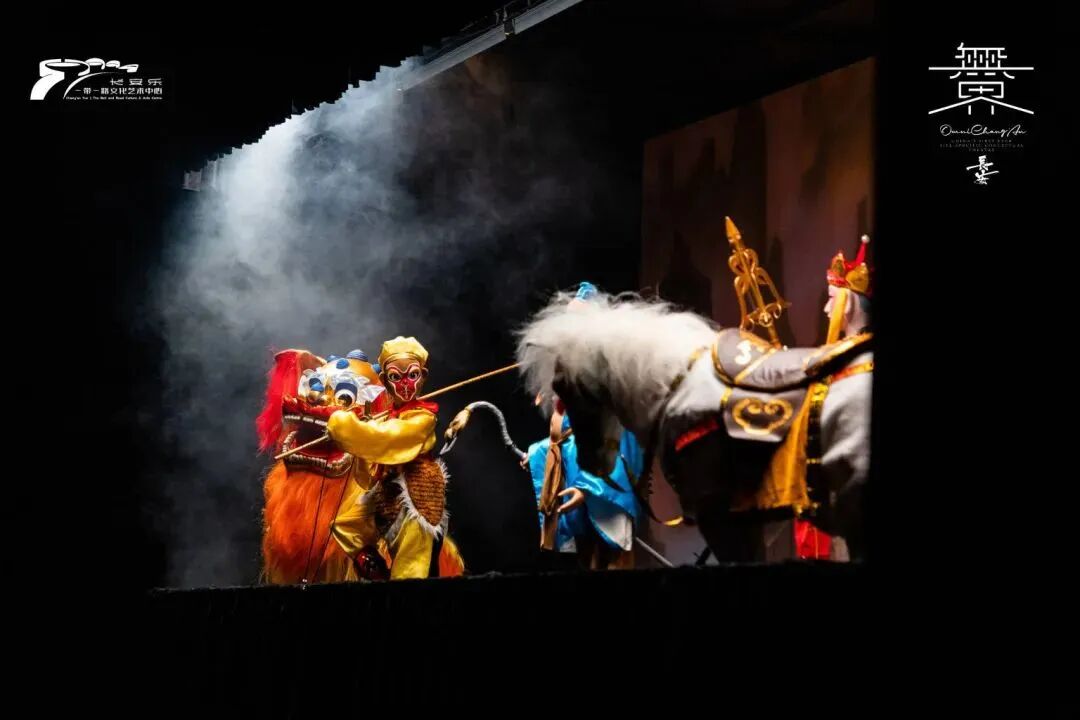 在这场演出中,我们惊异于导演组一切浪漫的、瑰丽的、风趣的、大胆的、新奇的想象,竟然都能在“美美与共”中得到和谐的统一。无论是《封神·黄河大阵》、《西游记》、《脚夫调》等经典戏曲片段,还是黑撒乐队原创的歌曲《长安》,抑或是《霓裳羽衣歌》、兵马俑阵列……当本土的非遗文化编织出一个多元的、立体的历史文化印象,我们既看到了原汁原味的陕西“忒色”,也寻到了诗词歌赋里的中国。