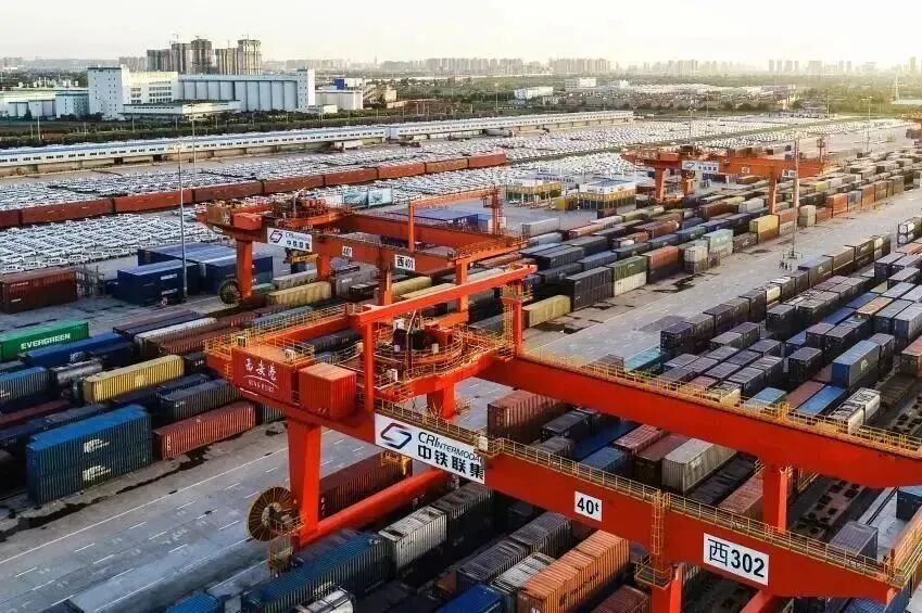线路采用铁-海-铁多式联运方式,全程跨越7829公里,运输时效约为15天。