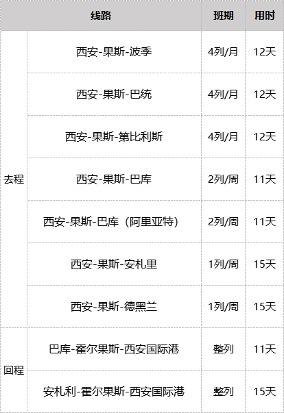 其中,西安—巴库11天可达
