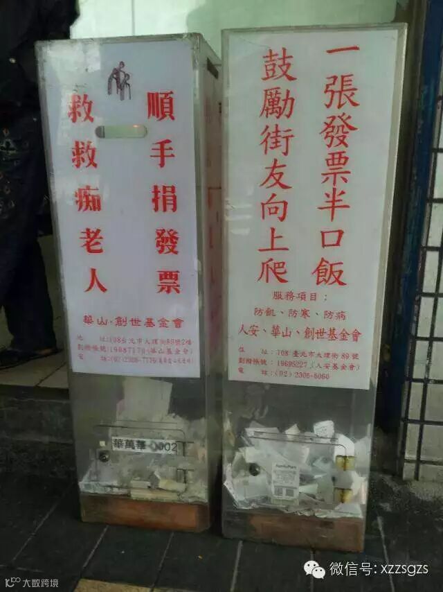 台湾的发票是定期抽奖的。于是民间机构发动大家购物之后索要发票,投到专门的箱子里,这种箱子被安放在很多商家门口。机构会派人来搜集这些发票,送到街友手边。每个月,街友会兑奖,兑完之后可以当做废纸卖掉。这样折合下来,每20张发票就能为街友提供一顿饭。