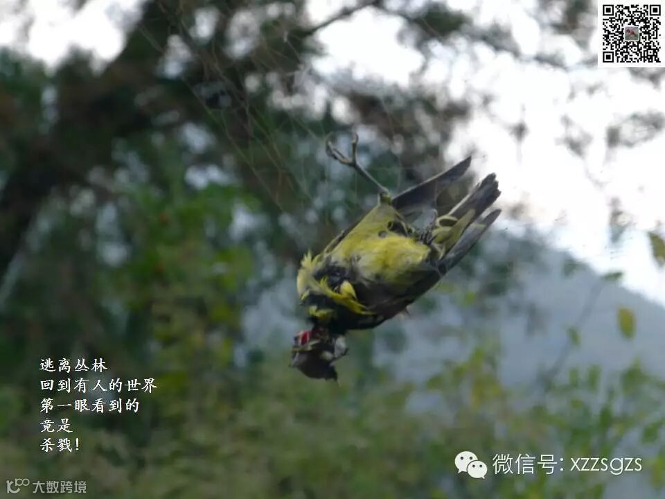这是我亲历过的,在我们说服农人放飞小鸟的时候,我们看到边上的草丛中堆满了没来得及摘下来,就惨死在网上的更多鸟儿。在香山的那次说服,农人放飞笼中鸟,鸟儿争先恐后地飞走,足足飞了好几分钟。