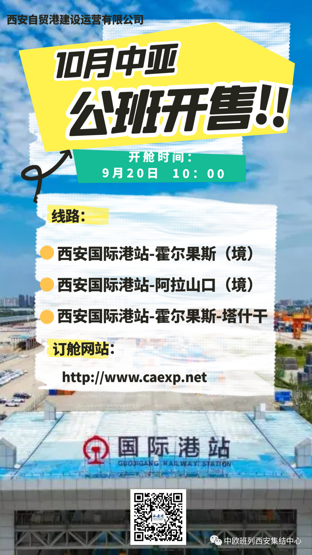 中欧班列长安号中亚线路10月上旬公共班列将于9月20日上午10:00接受订舱,现将信息提示如下: