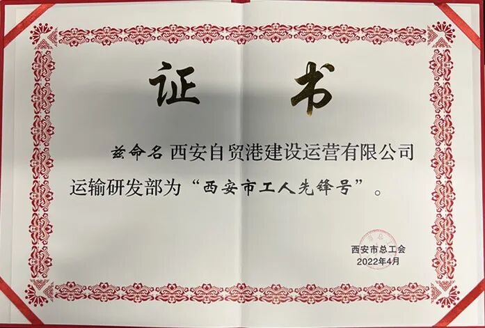 西安市总工会2022年4月,命名西安自贸港建设运营有限公司运输研发部为“西安市工人先锋号称号”。