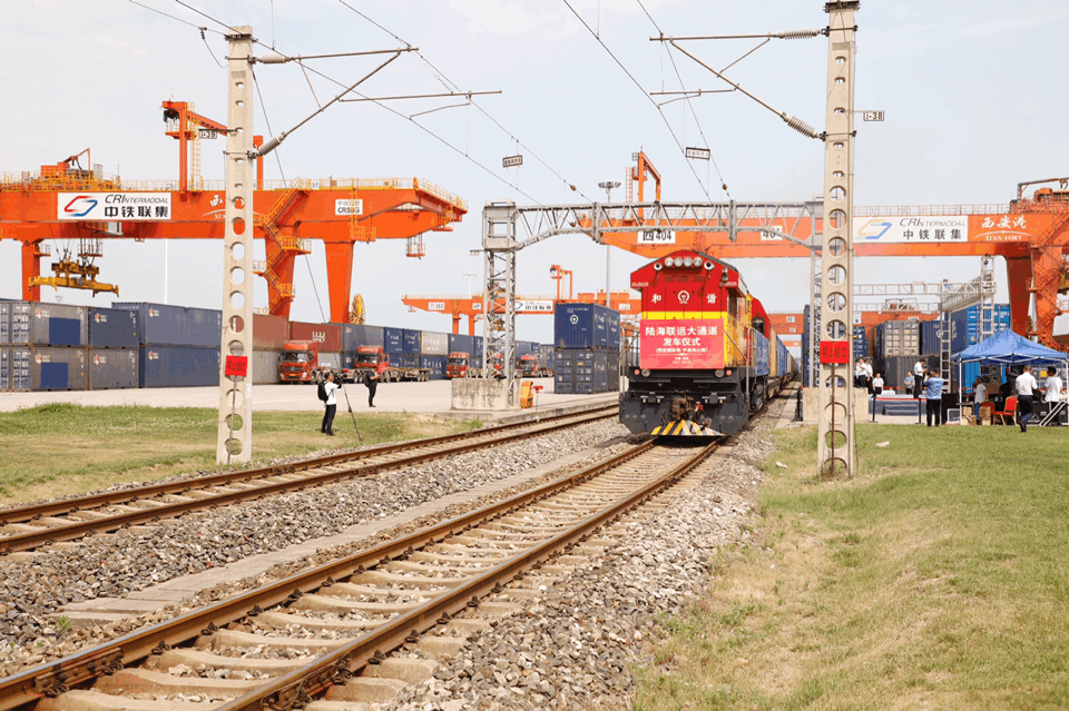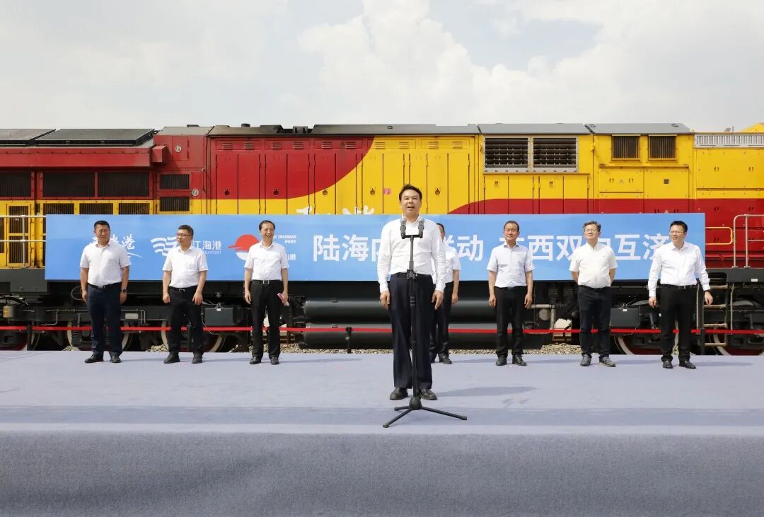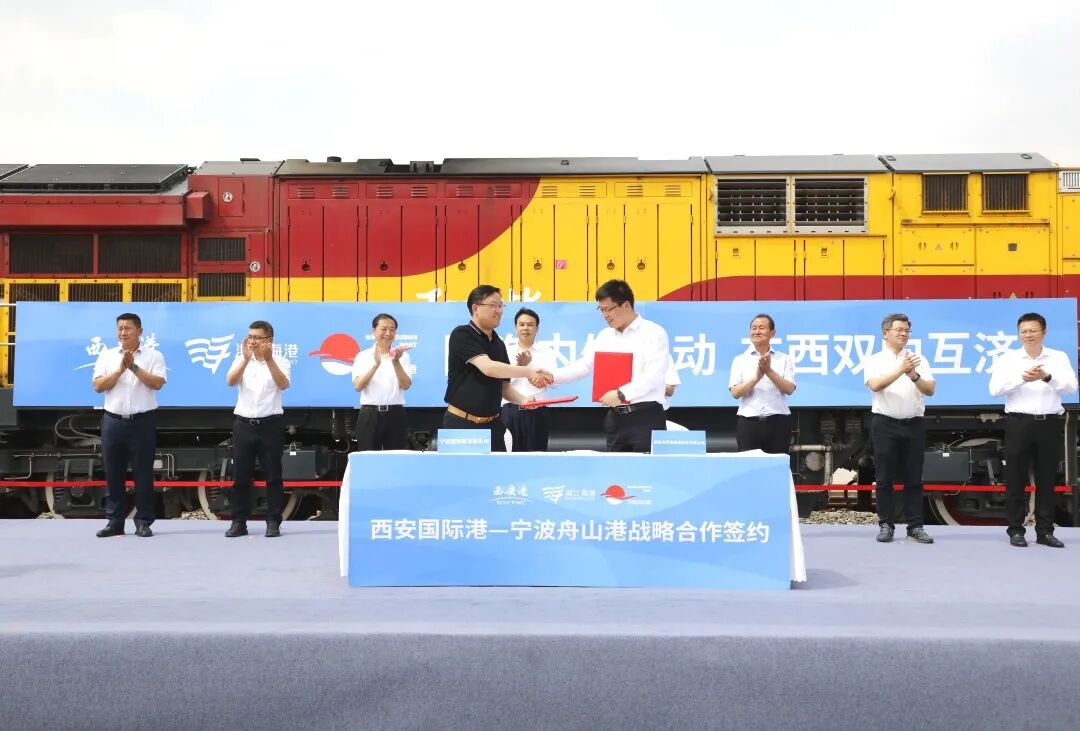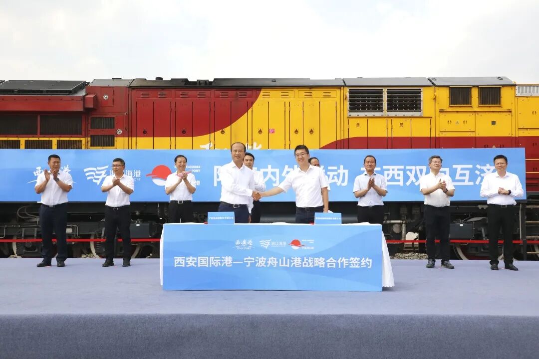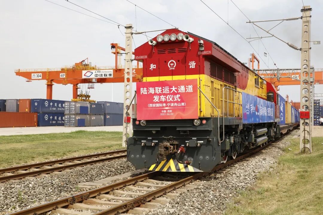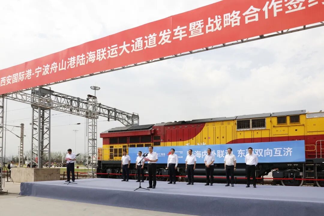 6月2日下午,一声响亮的发车令之后,西安国际港—宁波舟山港陆海联运大通道班列正式从西安国际港站发车。