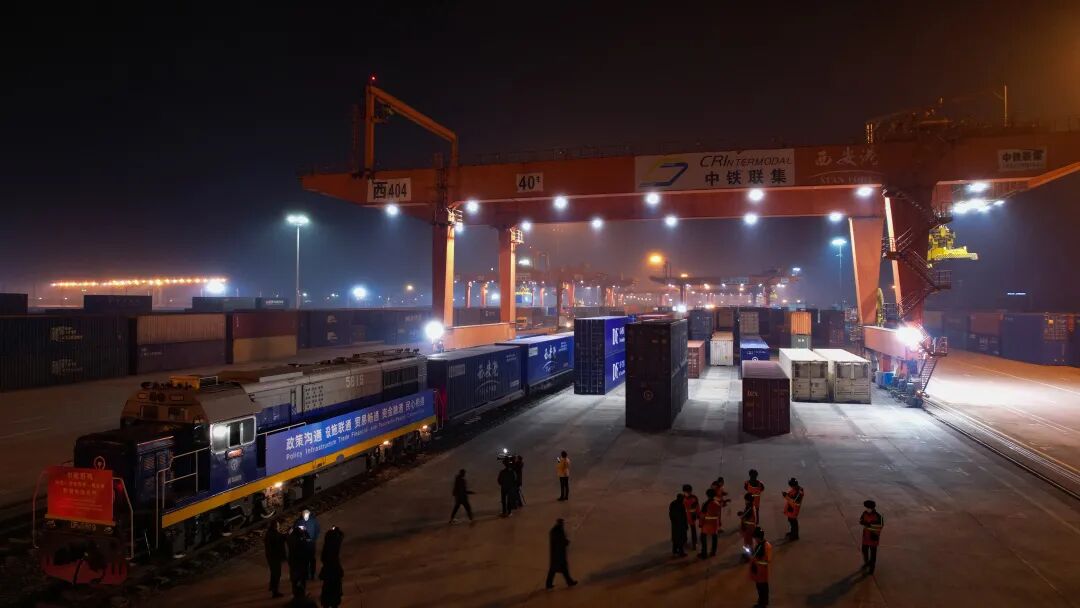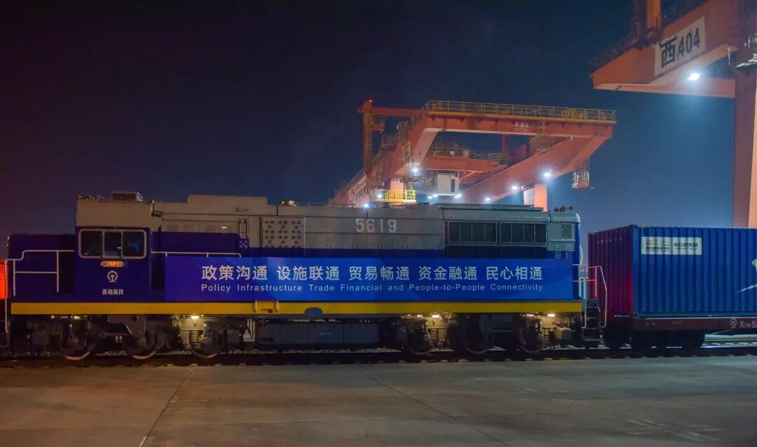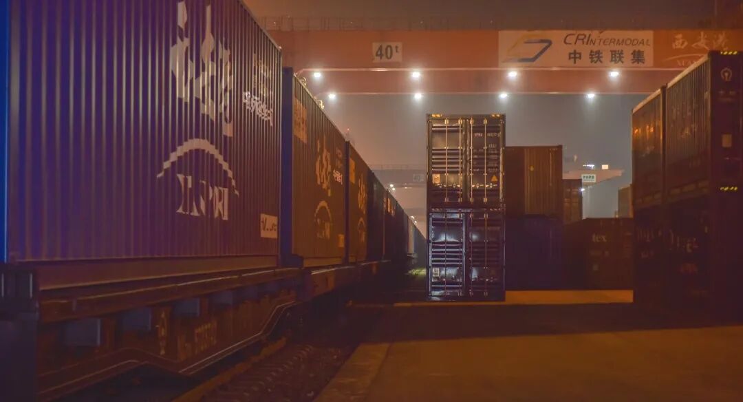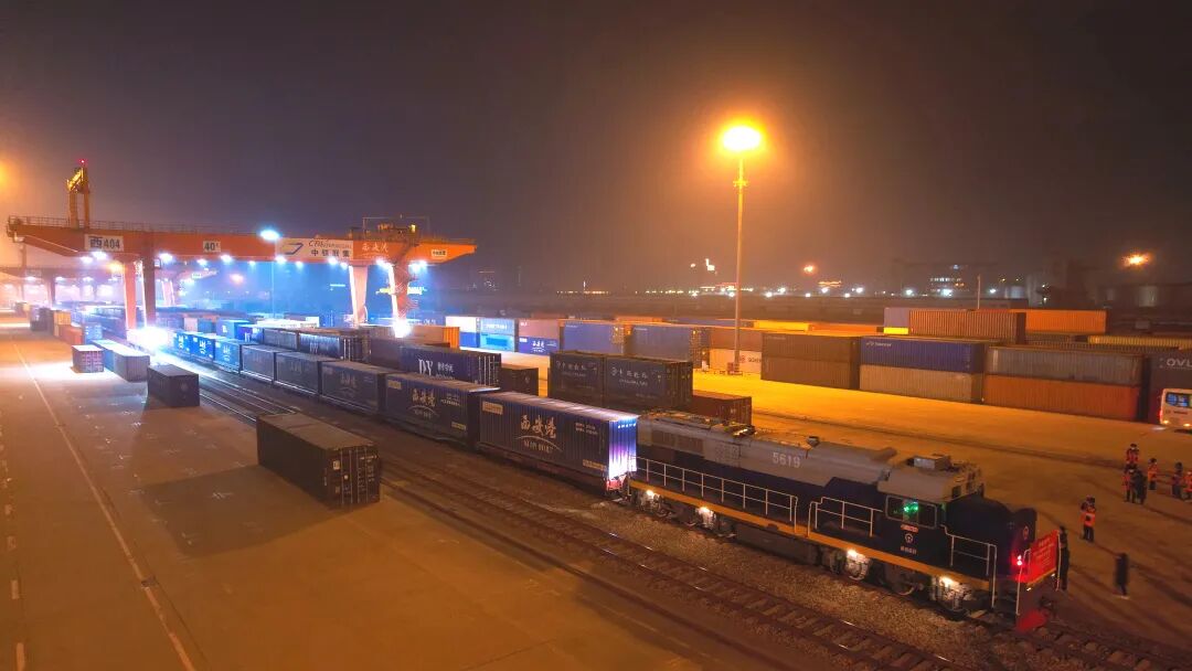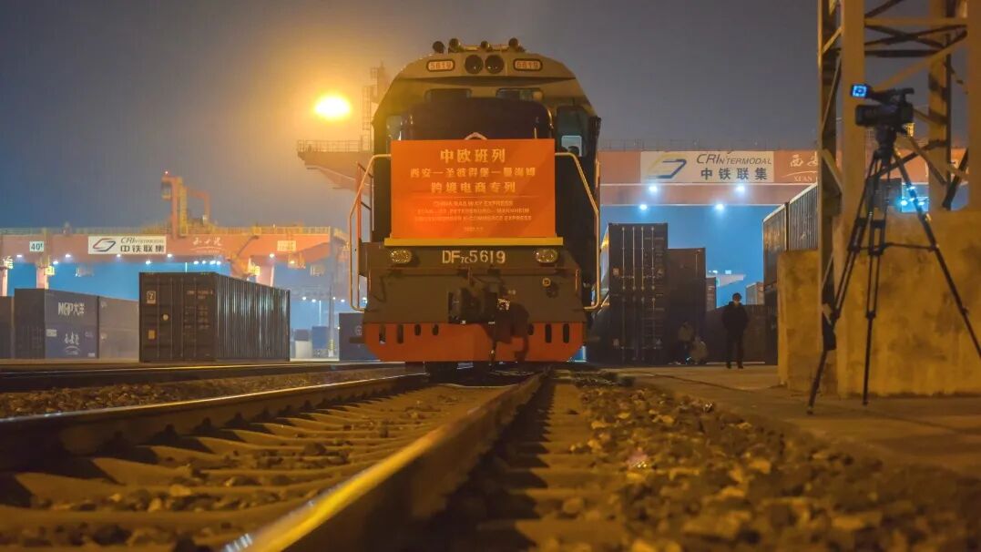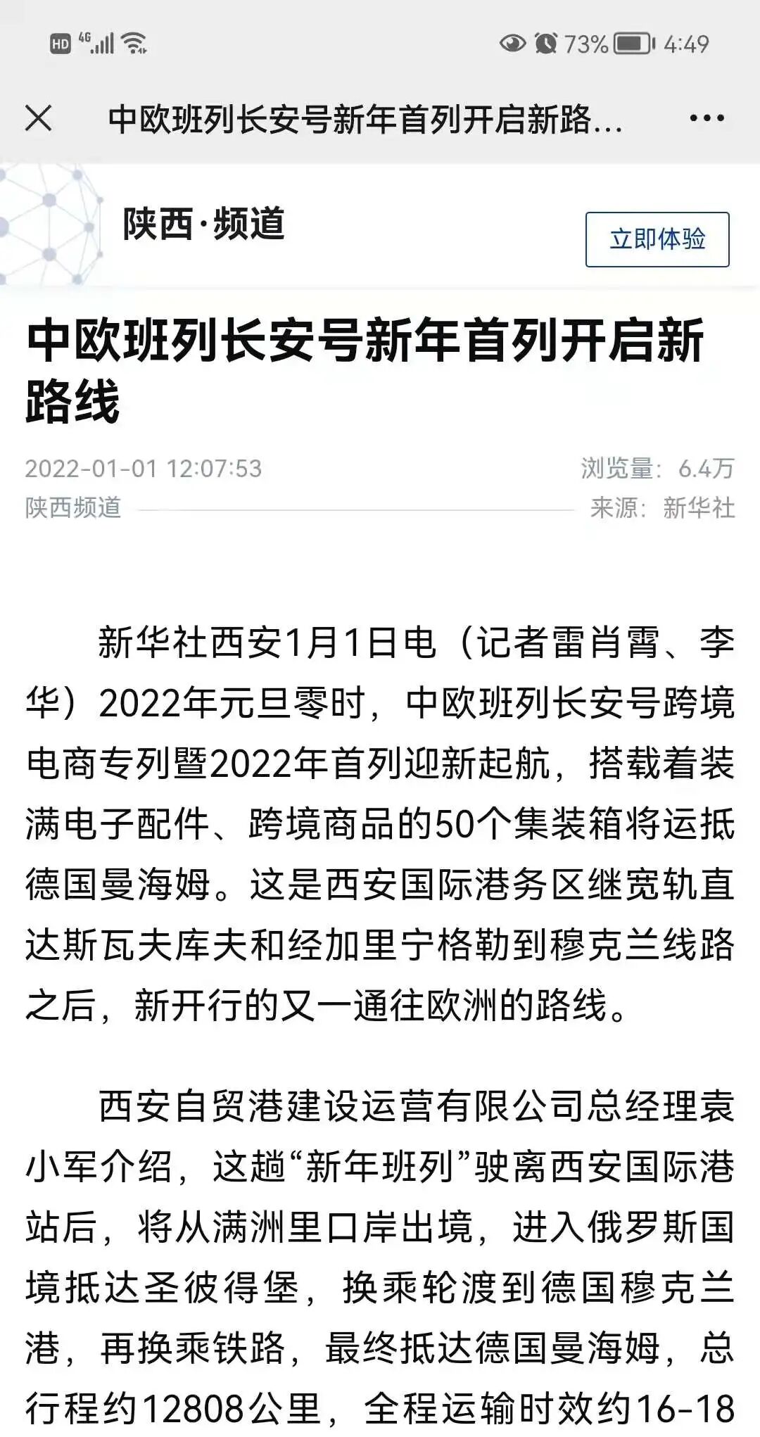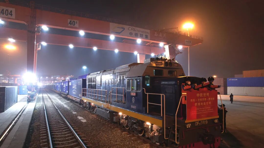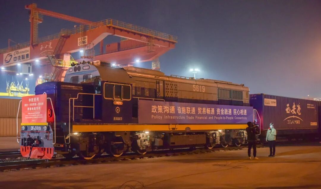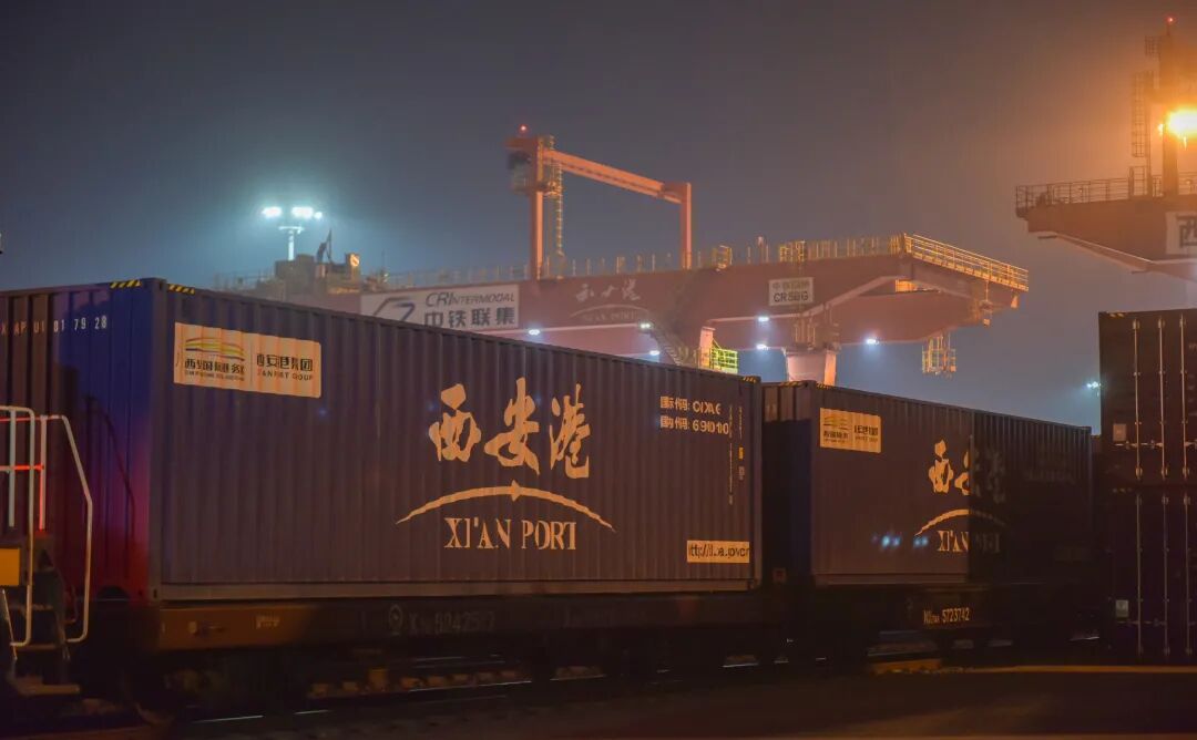 2022年元旦,零时,搭载着满载电子配件、跨境电商产品的50个集装箱,中欧班列长安号(西安—圣彼得堡—曼海姆)跨境电商专列暨2022年首列迎新起航,驶出西安国际港,奔向德国曼海姆。
