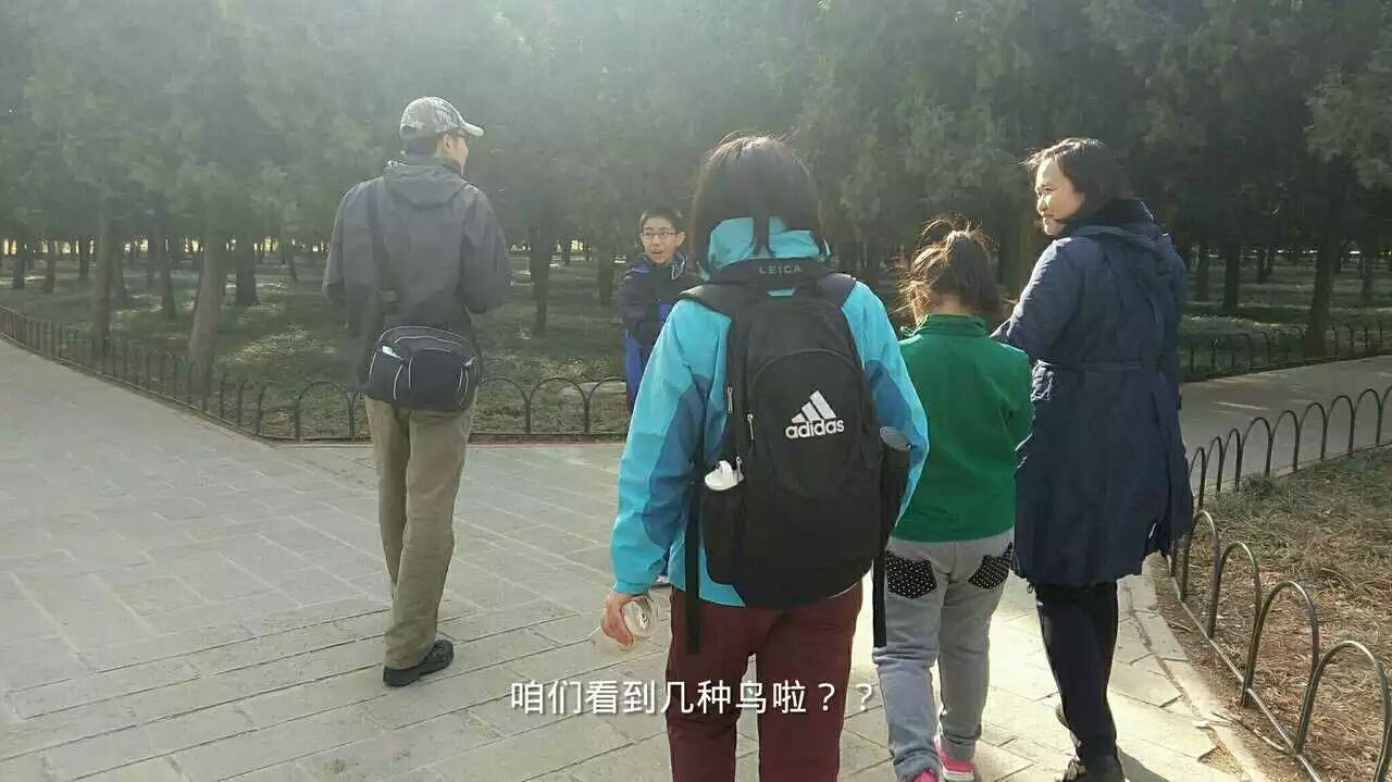 今天是观鸟指导老师田汉镛和领队一起,第一次执行的天坛活动。小田和妈妈7点半就到了。 领队7点四十在门口等着报名参加活动的朋友们。