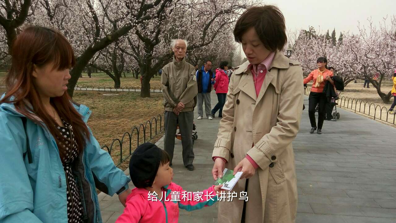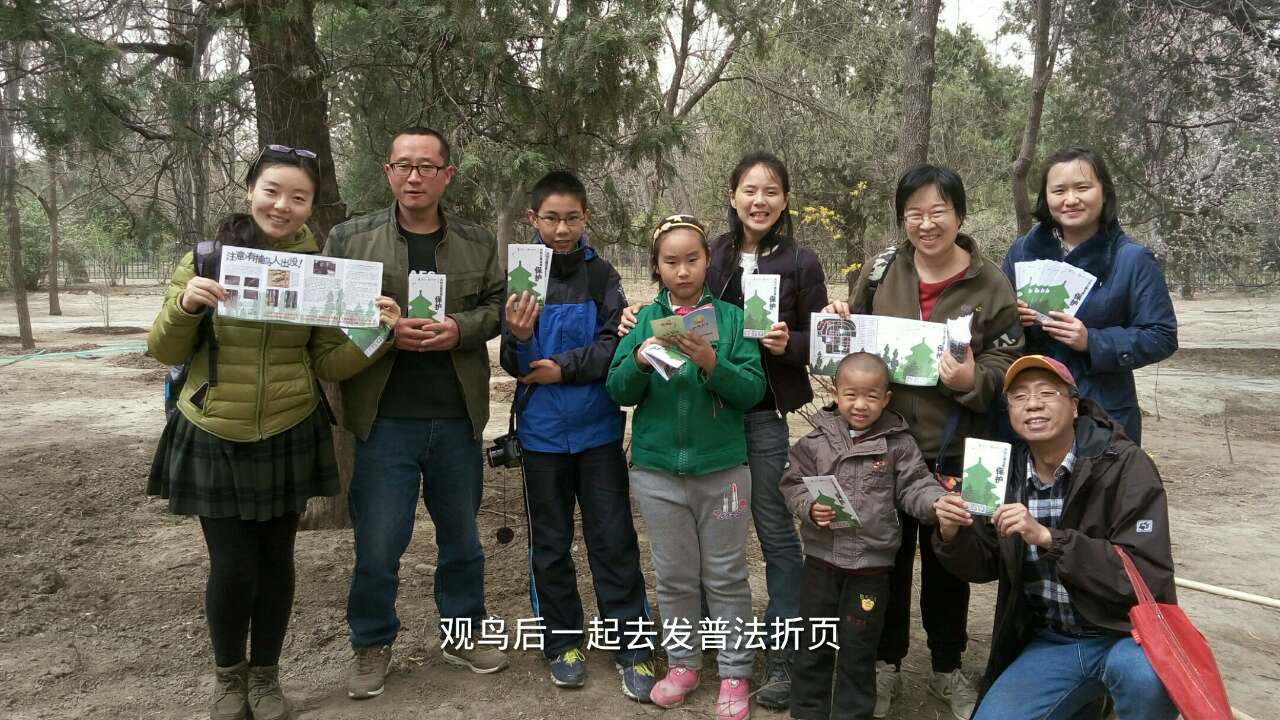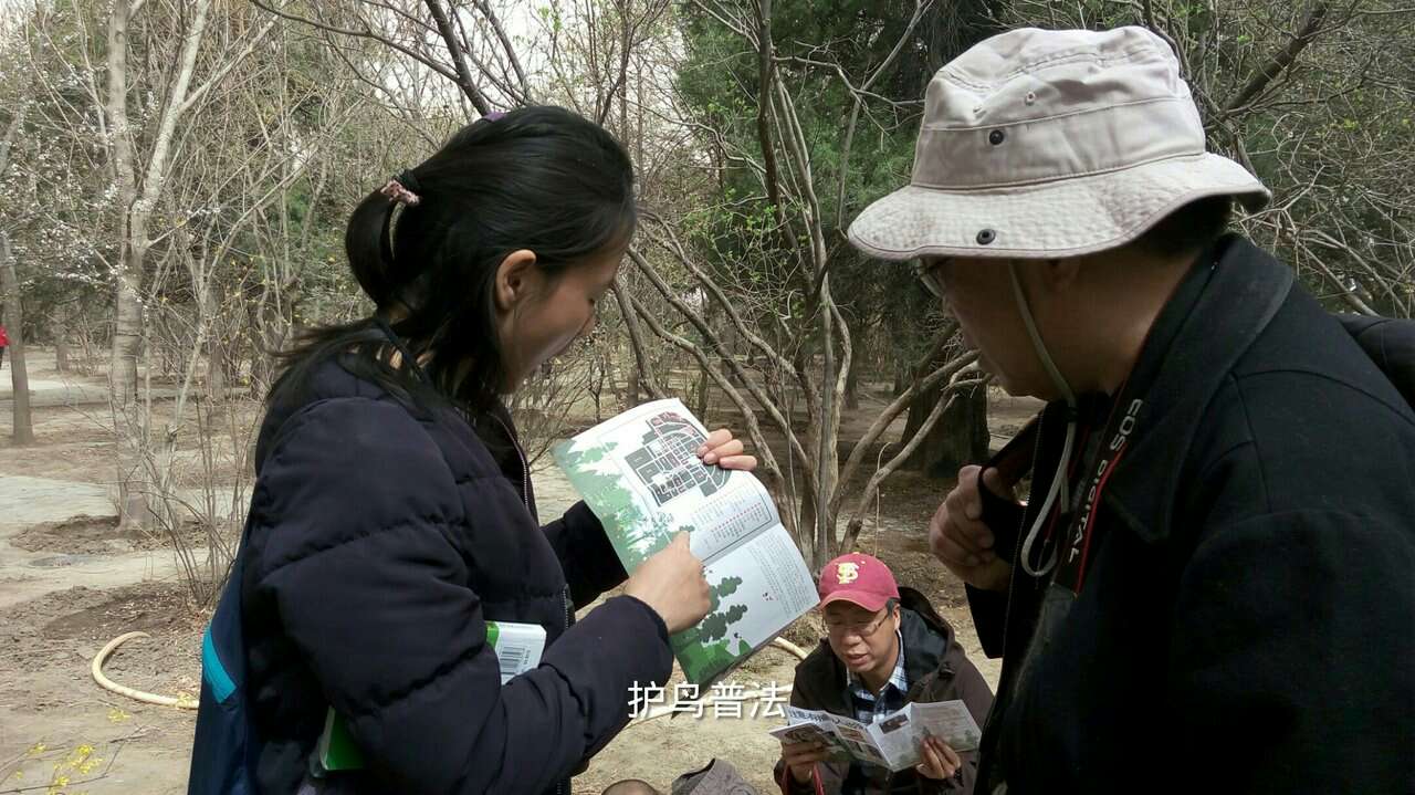 观鸟之后,要照例,在天坛曾经出现的盗猎的苗圃附近发放护鸟折页。如果经常来天坛锻炼的叔叔阿姨,游客,摄影爱好者,都能关注到鸟类反盗猎,让他们明白包括天坛在内的所有公园都是禁猎区,如果有见到捕鸟的人,一定要举报。