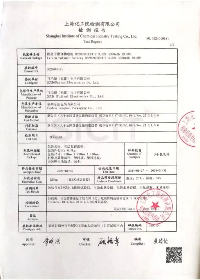 (1)产品(电池)安全性测试报告