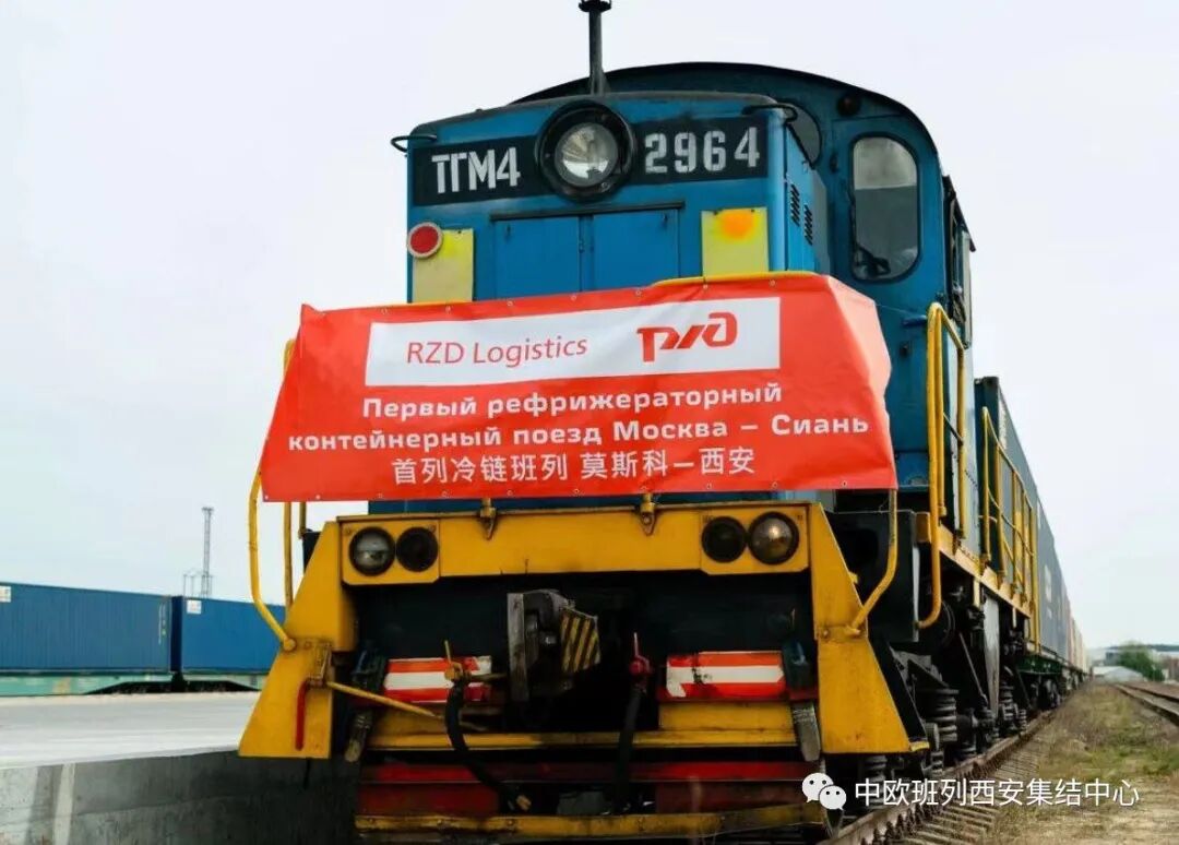 莫斯科时间2023年4月21日下午,一列满载着俄罗斯和白俄罗斯肉类及农产品的冷链班列从莫斯科契科夫火车站驶向中国西安。本列货物由俄铁物流公司、西安自贸港建设运营有限公司和上海锐泊时公司共同组织,这趟班列开创了两个“第一”,既疫情后长安号首列进口冷链班列,同时也是首列由莫斯科契诃夫火车站起运至中国的班列,具有里程碑式的意义。