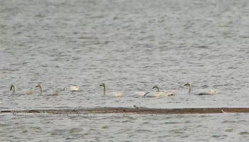 一天过后,当追踪组也来到这个水域,发现“文文”身边的同伴已经完全变了。现在陪着他的是另外15只小天鹅,30只白琵鹭,10只苍鹭,6只赤麻鸭,10只斑嘴鸭。还有大约300只鸬鹚在远远的湖畔游动。