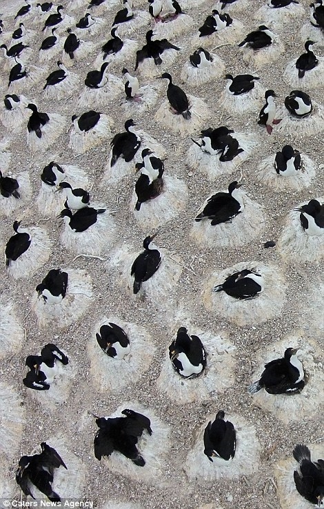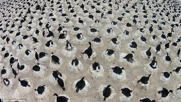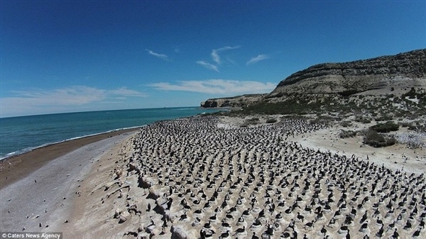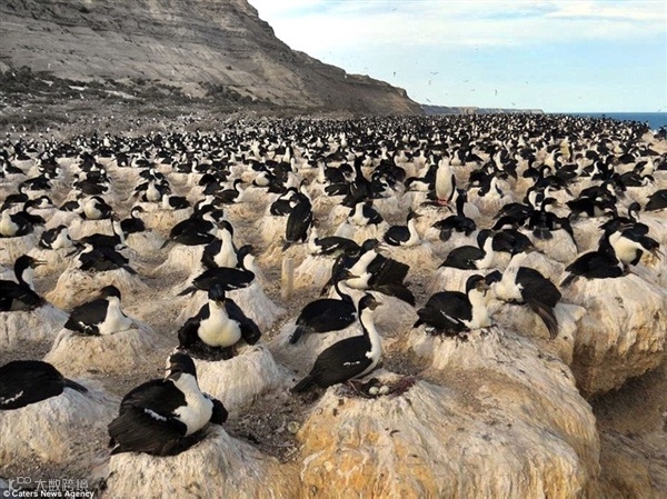 据了解,每逢到了皇帝鸬鹚产卵的季节,阿根廷的巴塔哥尼亚地区的海滩就挤满了成千上万的鸬鹚筑巢产卵,据估算占地约2000平方米,其密集程度让人惊奇。
