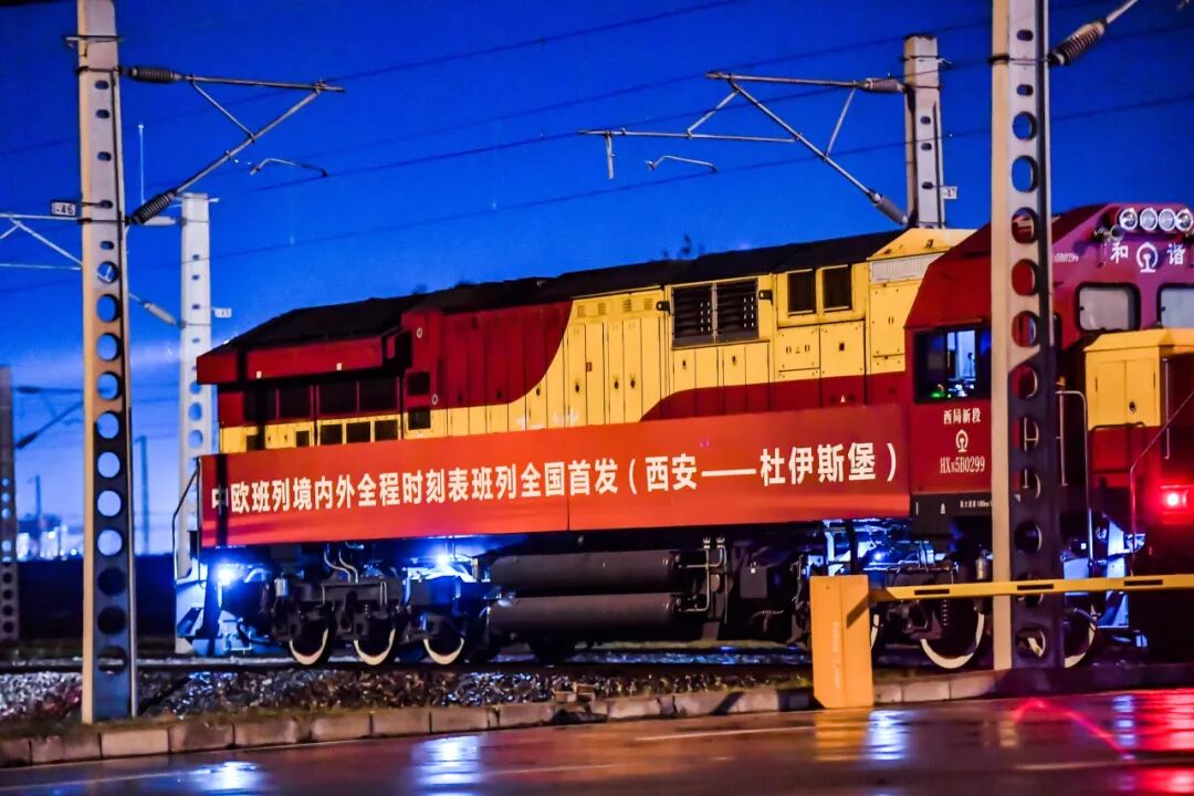 全程时刻表杜伊斯堡-西安首发,在全国率先实现了全程时刻表班列往返对开,开行质量得到了国家发改委、国铁集团及客户的高度认可。