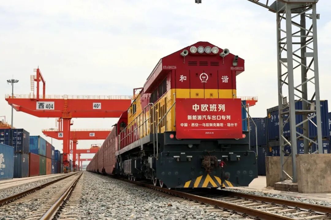 2024年5月17日,一列满载着261台陕西本地企业生产的比亚迪新能源汽车,搭乘中欧班列(西安)从西安国际站出发,经由霍尔果斯口岸开往乌兹别克斯坦首都塔什干。