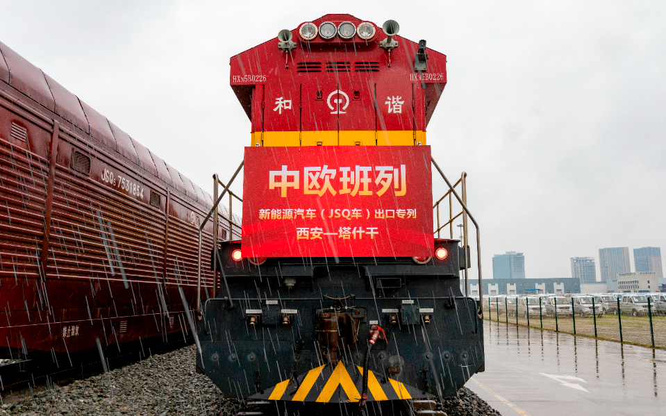 2024年3月5日,一列满载着261台陕西本地企业生产的比亚迪新能源汽车,搭乘中欧班列(西安)从西安国际站出发,经由霍尔果斯口岸开往乌兹别克斯坦首都塔什干。