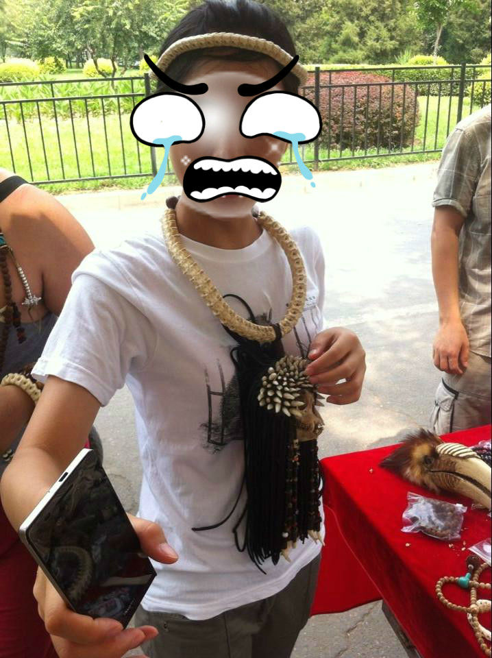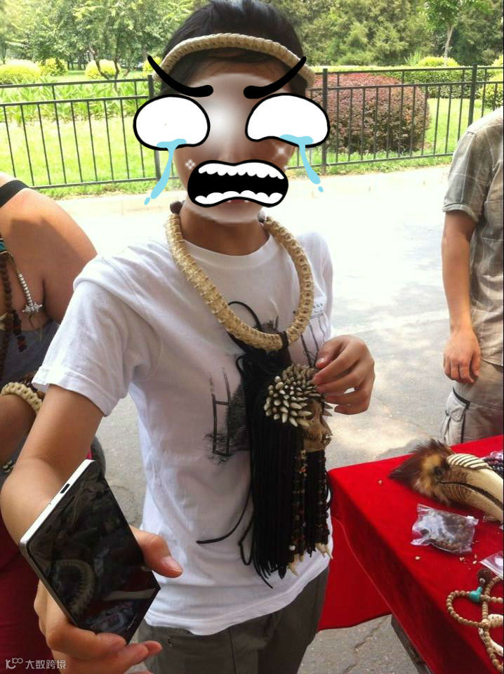 沿路一直走会看到各种稀奇古怪的把玩品,最让人瞠目结舌的是一个打扮夸张的男人,握着超过一人高的手杖,上面用镶满绿松石的猴子头骨,蛇骨等装饰。他头上是蛇骨,脖子上挂着蛇骨和猴子头骨制成的项链,总之是满身的罪恶!更可怕的是他的摊位!走进才发现那是一车的蛇骨制成的饰品,还有一个巨犀鸟的鸟喙,一只贝贝熊的嘴部骨骼,“这个四万,我家还有几十万的,这都是我自己设计,自己做的,这都我的兴趣”言语间满是骄傲,甚至狂妄。边说还热情的给我们戴上他的各种“饰品”。满脸得意,虽然有兴趣爱好是好事,但这种违法犯罪,毫无下限的兴趣就是违背人道的行为,是野蛮,兽性行为,这种非法牟取暴利更是应该受到法律制裁。