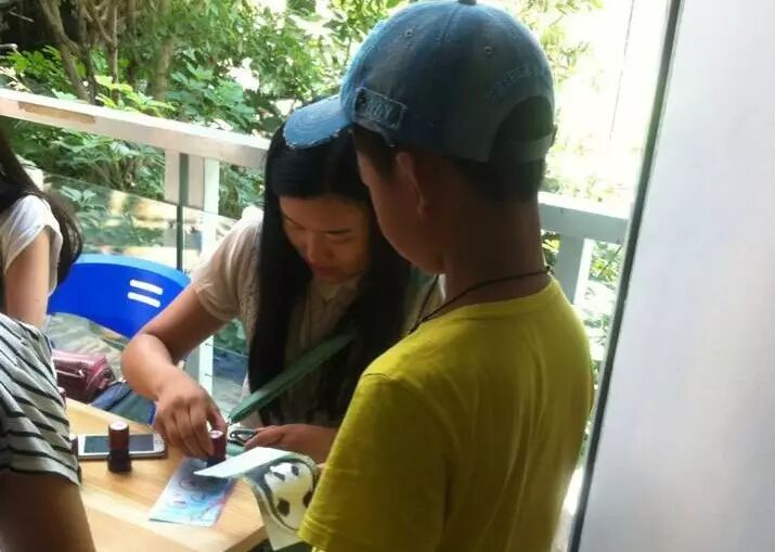 (实习姐姐们给可爱的小游客盖答题游戏章)