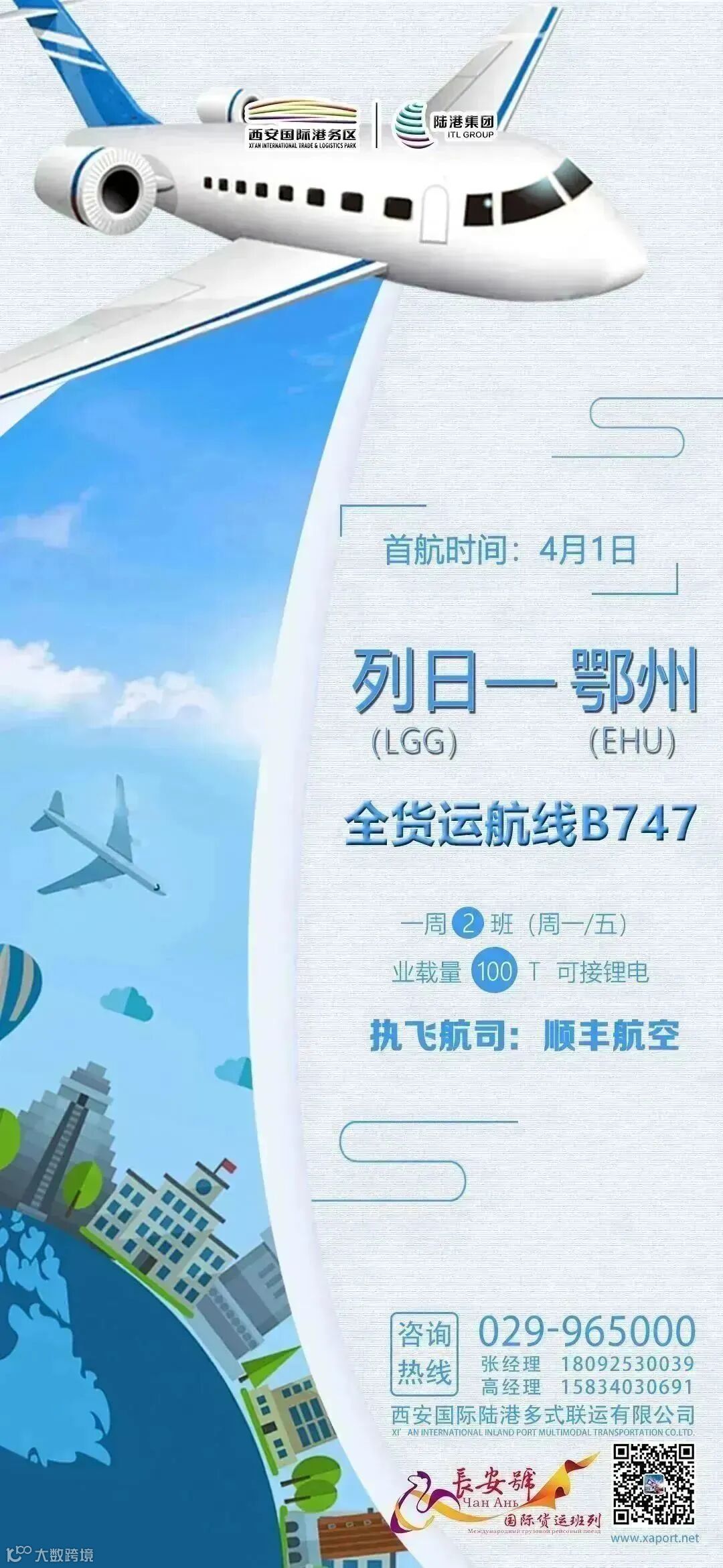 “鄂州=法兰克福”航线是西安国际陆港集团多式联运公司第二条鄂州往返欧洲的全货运航线,我们将继续扩充运力、加大航线布局、织密航线网络,增加公司空运线路的辐射范围,为客户提供多元化物流解决方案。