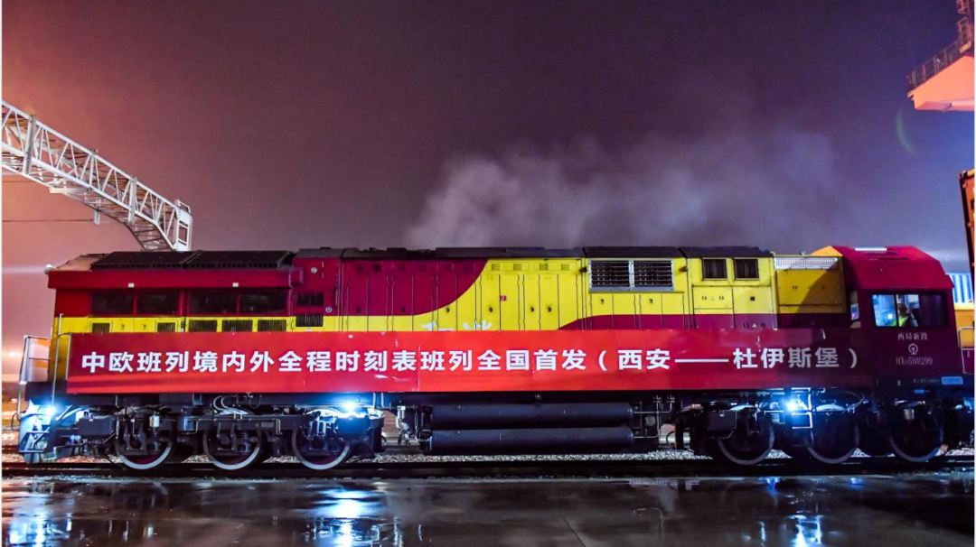 10月26日凌晨3点55分,满载50车光伏逆变器、电动压缩机、吸尘器以及中欧班列(长安号)集拼中心汽车零部件拼箱等货物的X8155次中欧班列,从中国铁路西安局集团有限公司西安国际港站缓缓驶出,经阿拉山口口岸出境,一路向西驶向欧洲,将于11月5日凌晨3时抵达德国杜伊斯堡。这标志着全国首趟境内外全程时刻表中欧班列(西安)顺利开行。